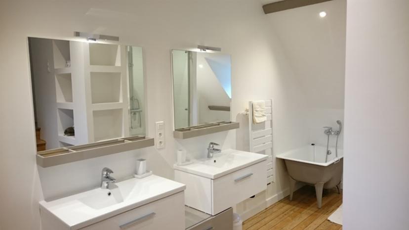 Double bedroom F of 23 sqm convertible into 2 beds 90 cms and 1 bed 90 cms and Ensuite bathroom with bath, shower, wc