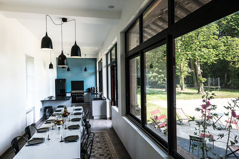 Kitchen  : the orangery was transformed into a beautiful kitchen with large plate-glass windows giving a splendid view on the park with fridge, dishwasher, microwave oven, gas stove, gas oven, freezer, expresso machine, coffee machine, garden access, terrace access, electric oven
