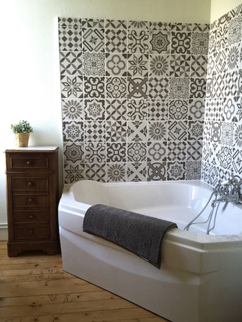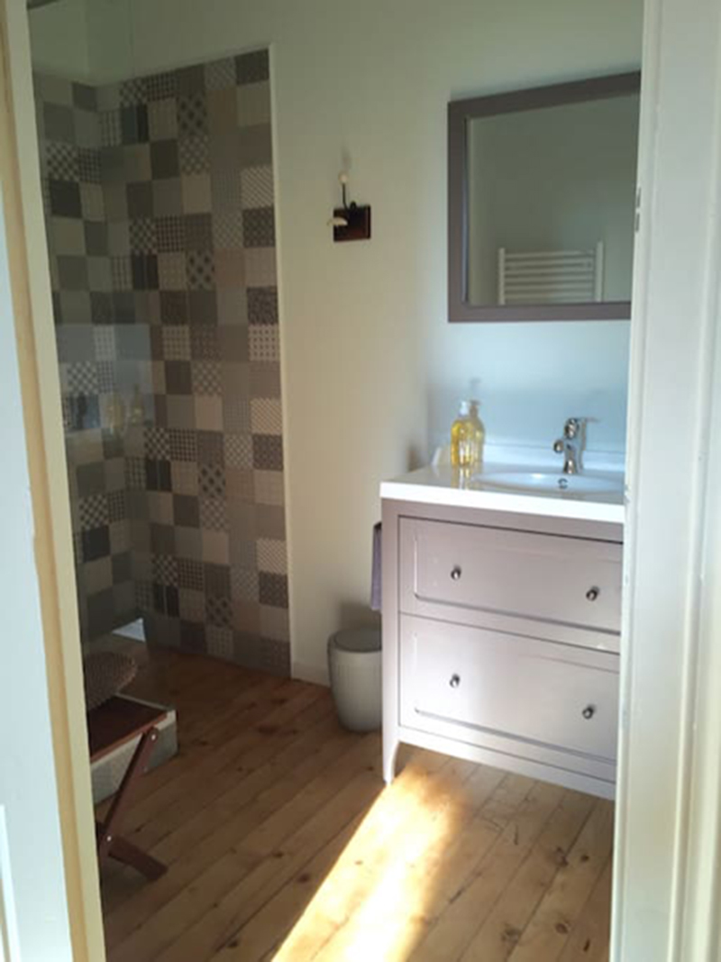 with double bed, small single bed 80cm large and Bathroom with sink, bath, shower