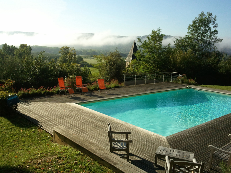 In summer, you can have dinner under the trees or swim in the pool that gives onto a breathtaking view and overlooks the church. In the evening you can admire the sunset, the view of the cliffs, and you will be lulled by the sound of the stream flowing along the property.