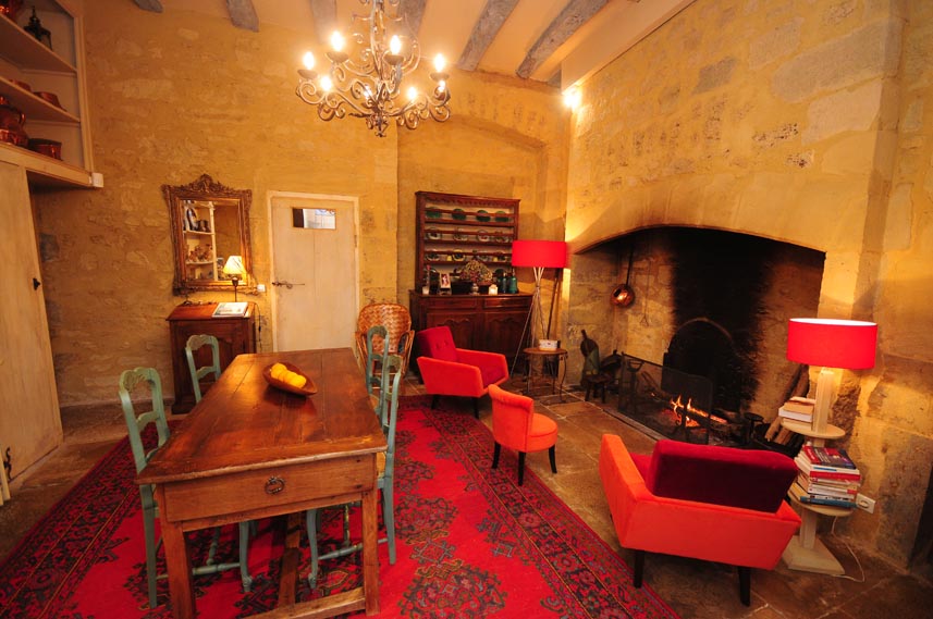 Kitchen with dining area fully equipped and Dining Room for 8 guests opening onto the garden with fire place