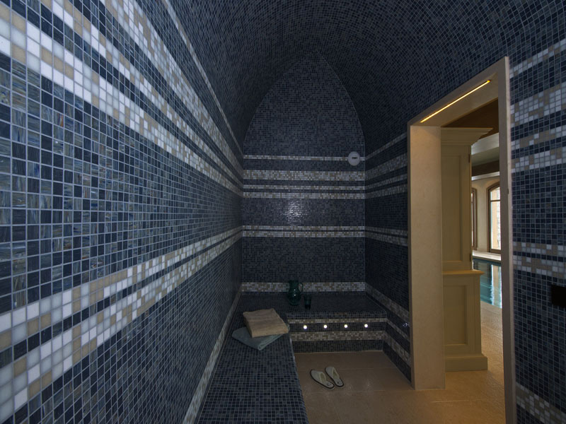 Spa with hammam, sauna, jacuzzi, massage table, shower, fitness machines