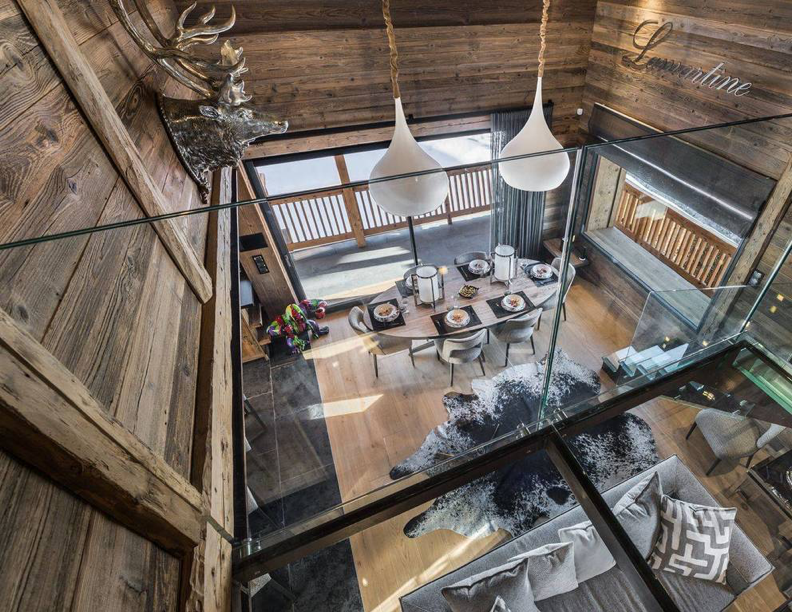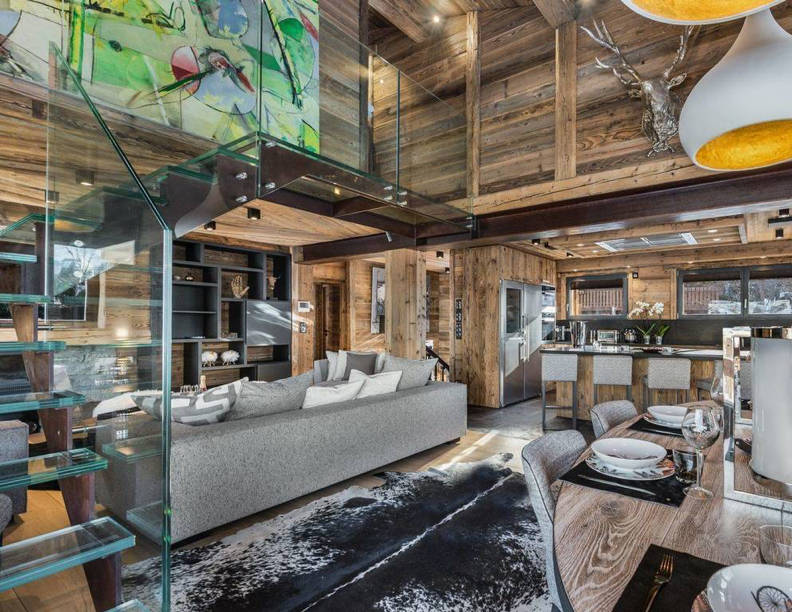 The chalet is organized on 3 levels and offers 6 superb suites including 1 sumptuous Master, a large living room with kitchen, bar, dining area and TV lounge, fireplace, a fitness area, an outdoor jacuzzi ... The chalet also offers equipment state-of-the-art technology: sound system in every room and on the terraces, control with tablets, etc.