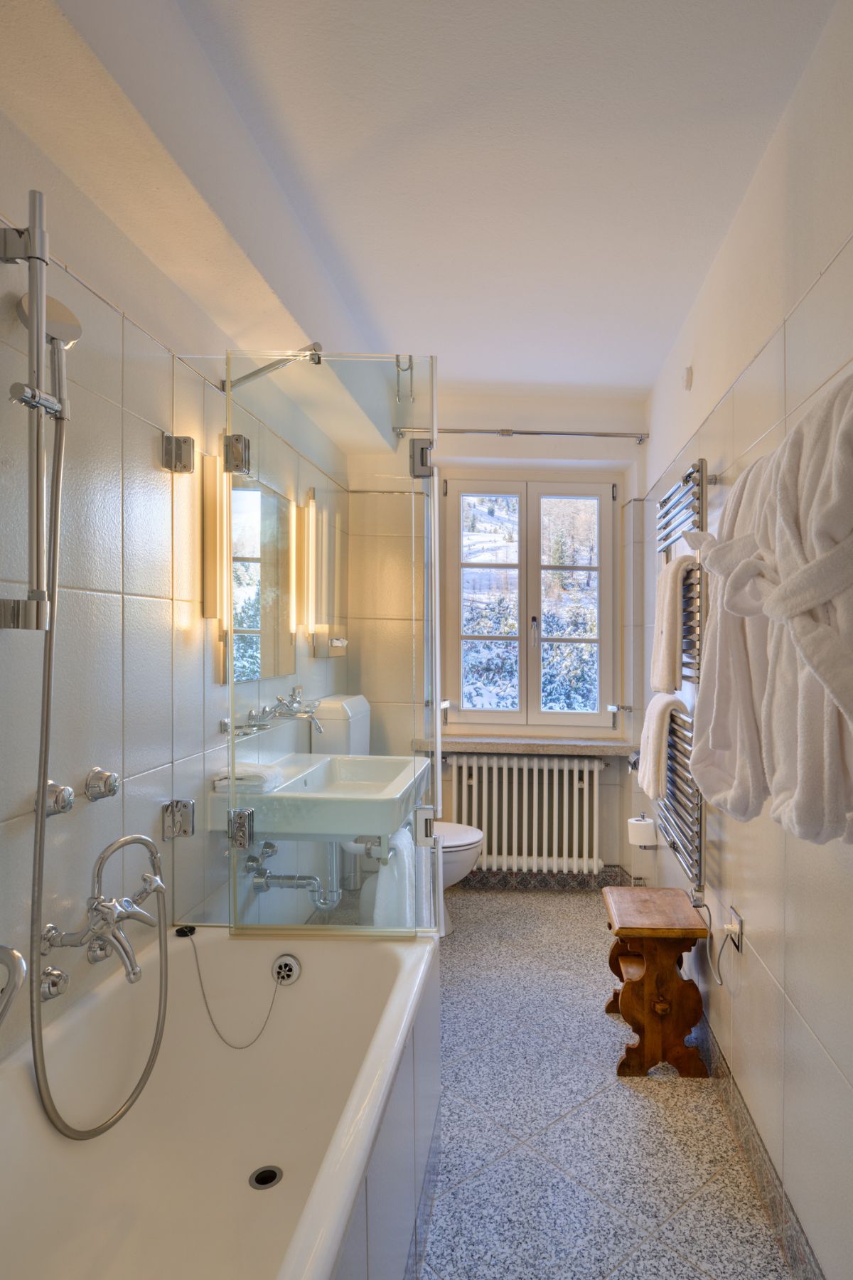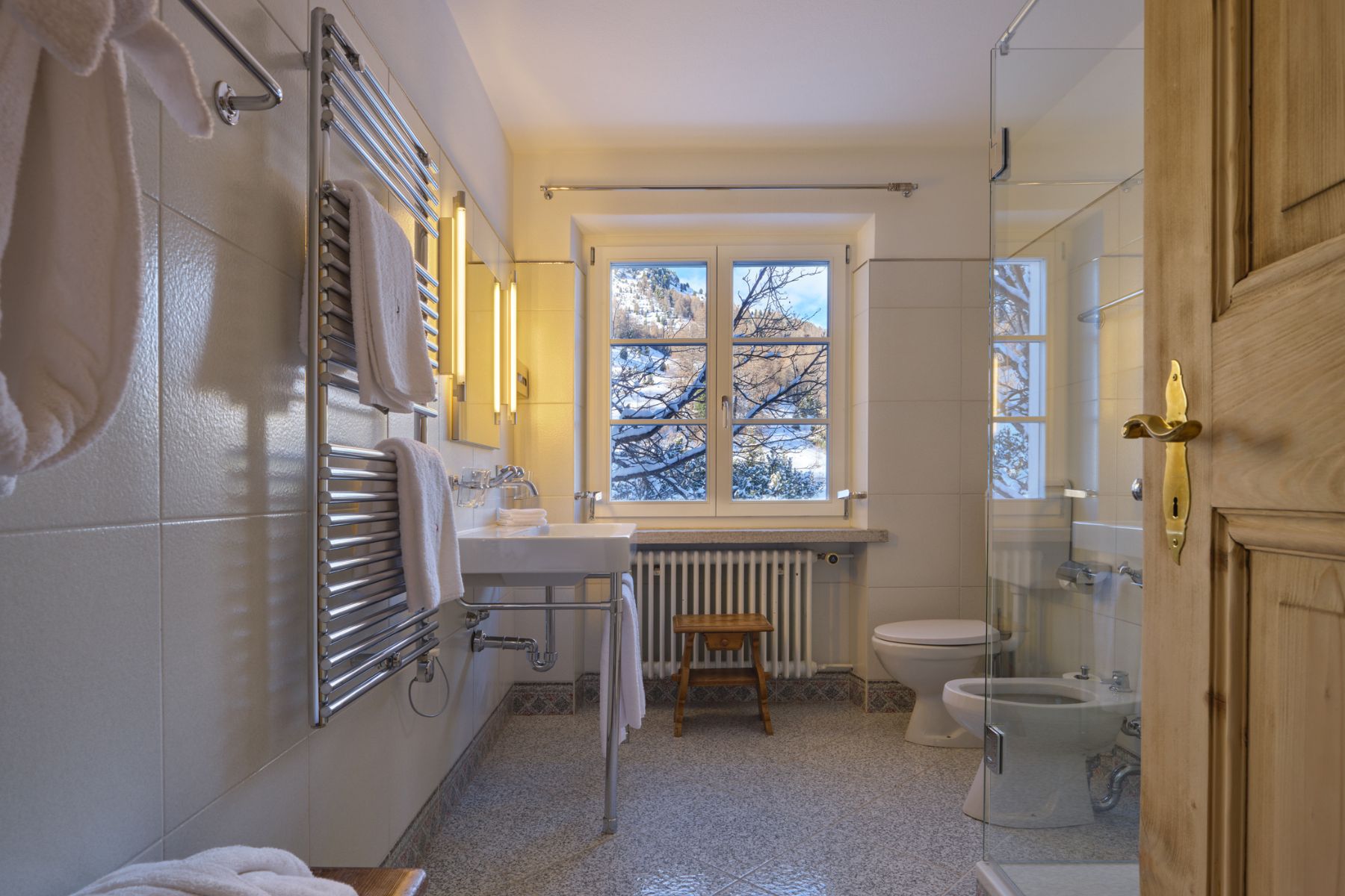 Balcony over looking Lake Silvaplana, Spacious Double Bathroom with Large Power Shower and a small