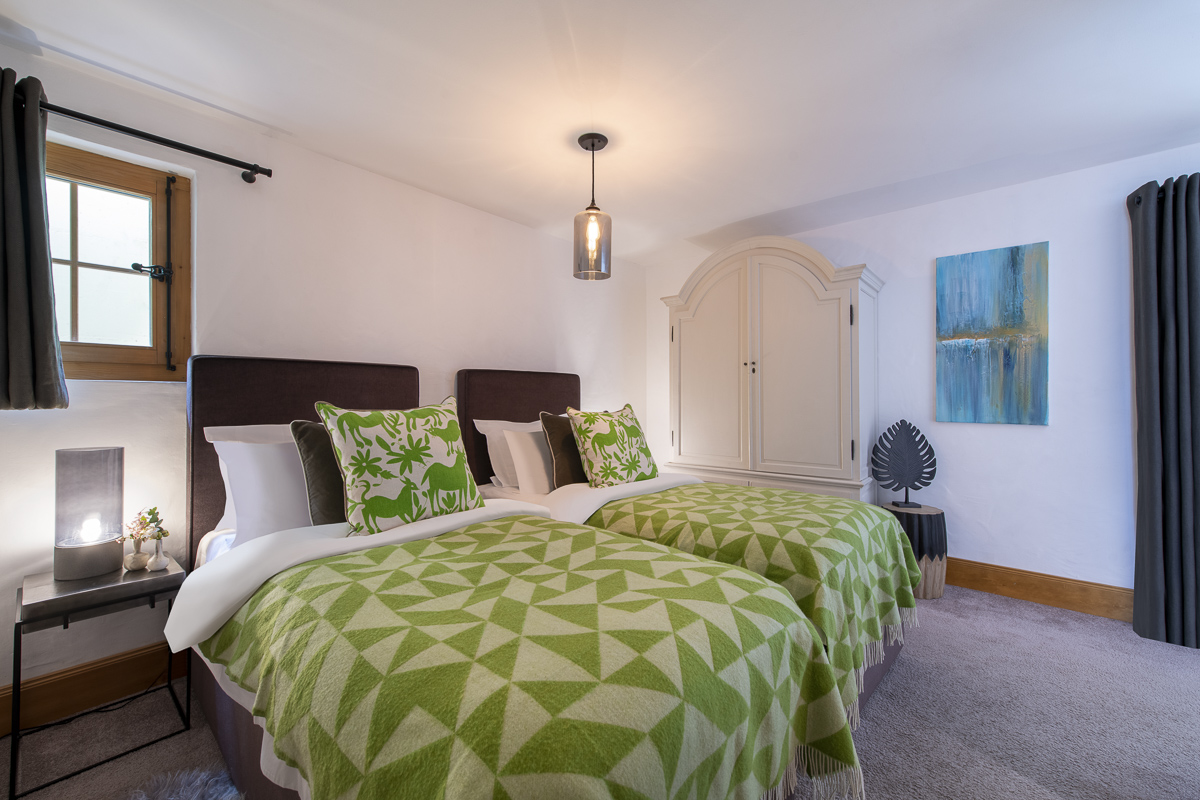 Twin bedroom with super king-size bed and Ensuite bathroom with shower, wc