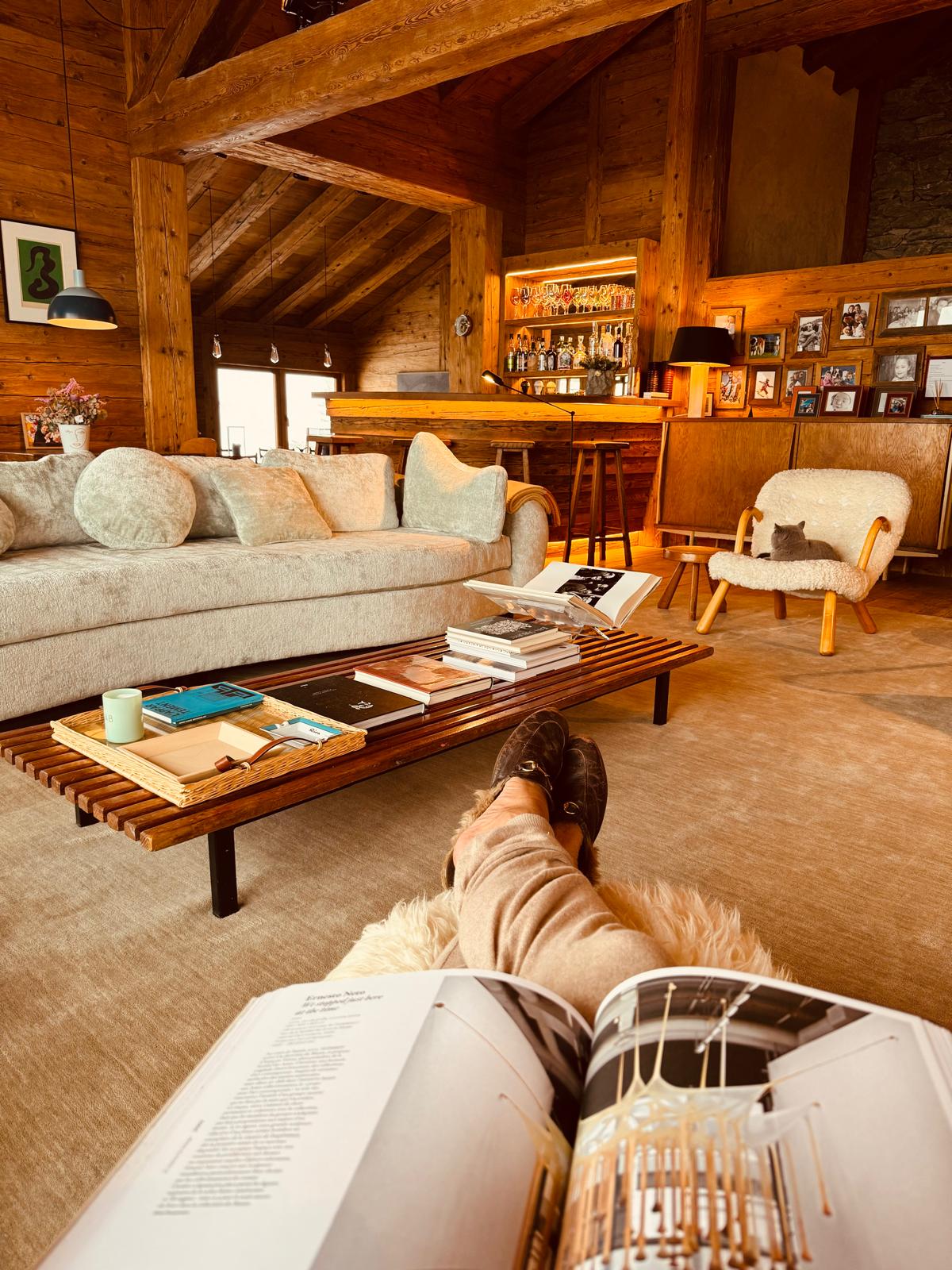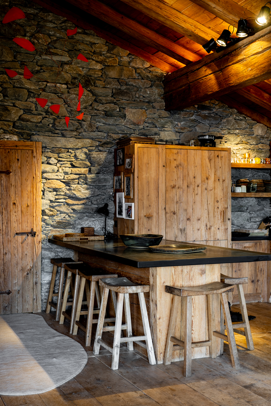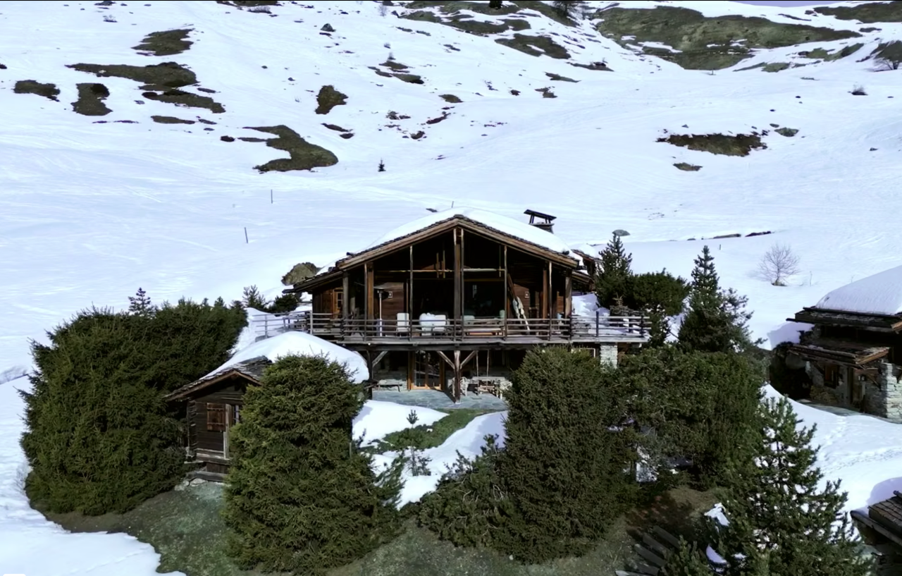In Verbier, in the heart of the Swiss Alps, this 400 sqm chalet opens onto the surrounding mountains. Six bedrooms, six bathrooms, a design that blends Alpine tradition with contemporary art — including works by Alexander Calder, mobiles and sculptures, lending the spaces a singular character.