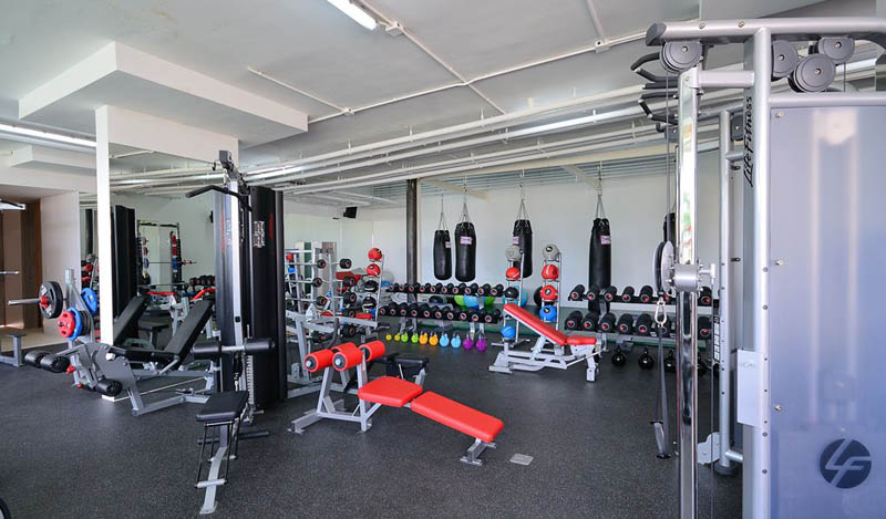 Gym Room 2 changing rooms with shower, wc and lockers with fitness machines