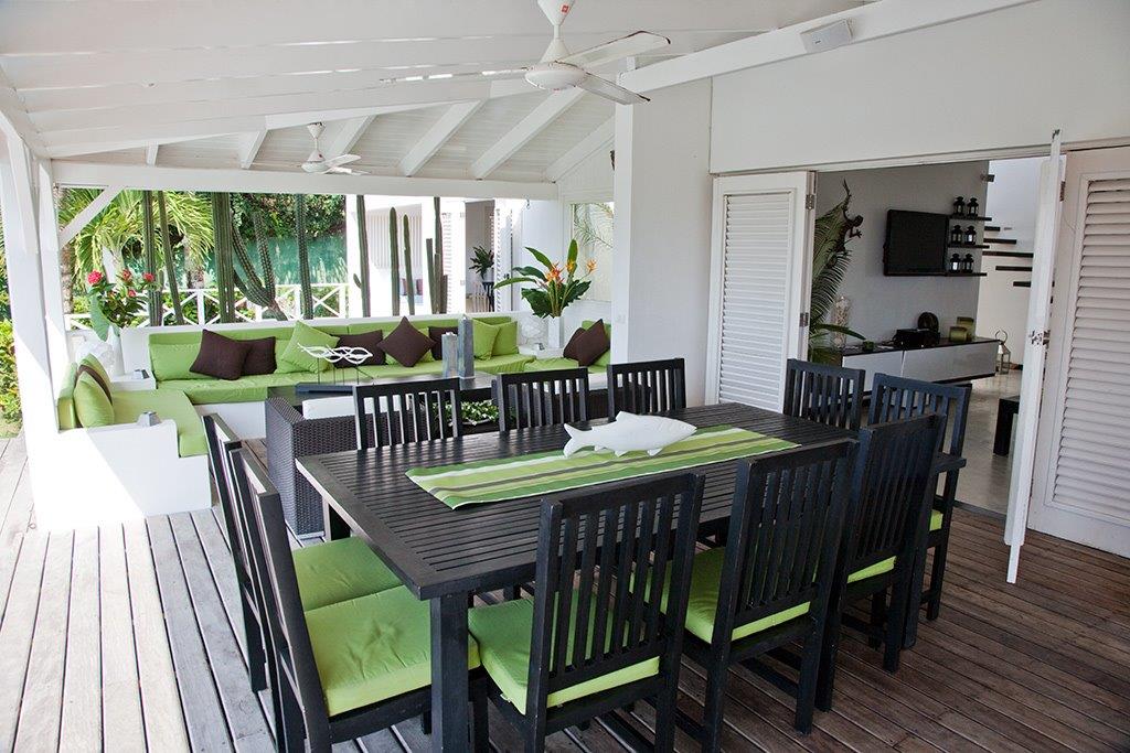 Covered and equipped Terrace with dining and living areas