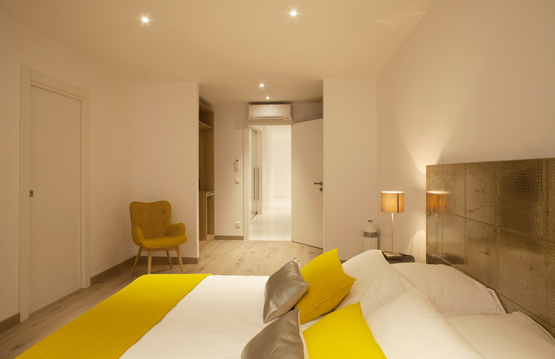 Double bedroom with queen-size bed, walk-in closet, terrace access, safe, lcd tv