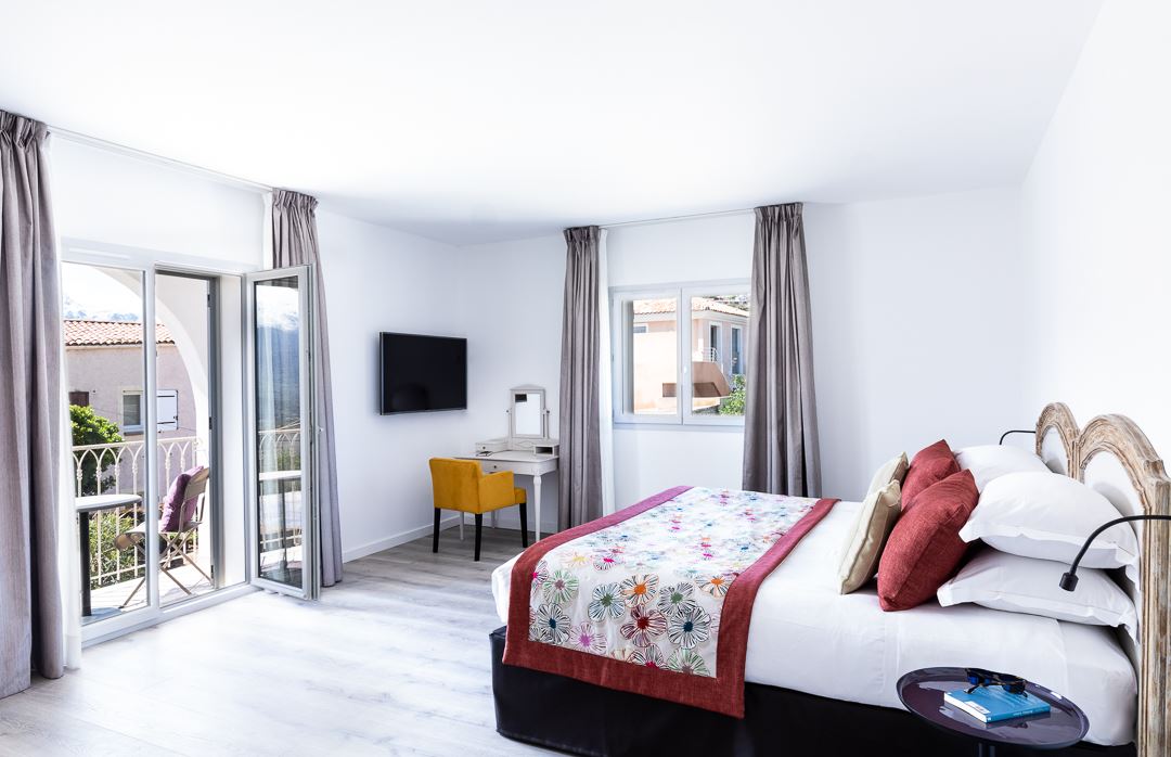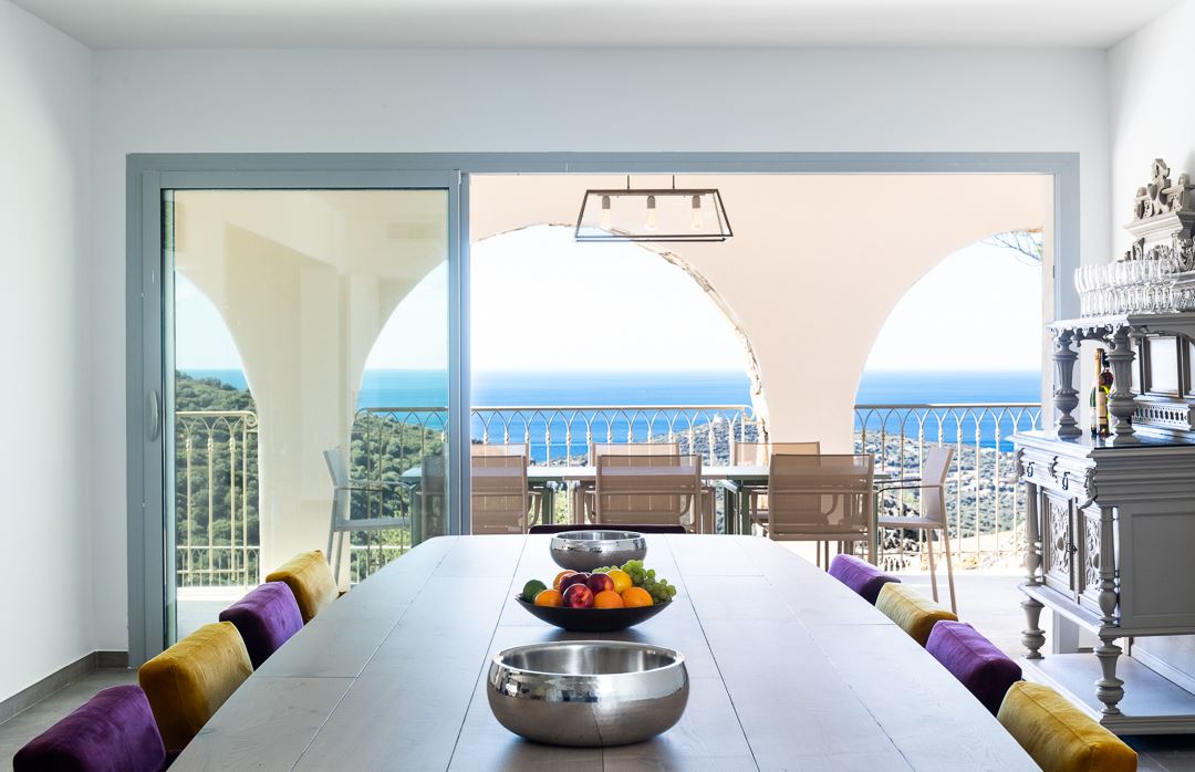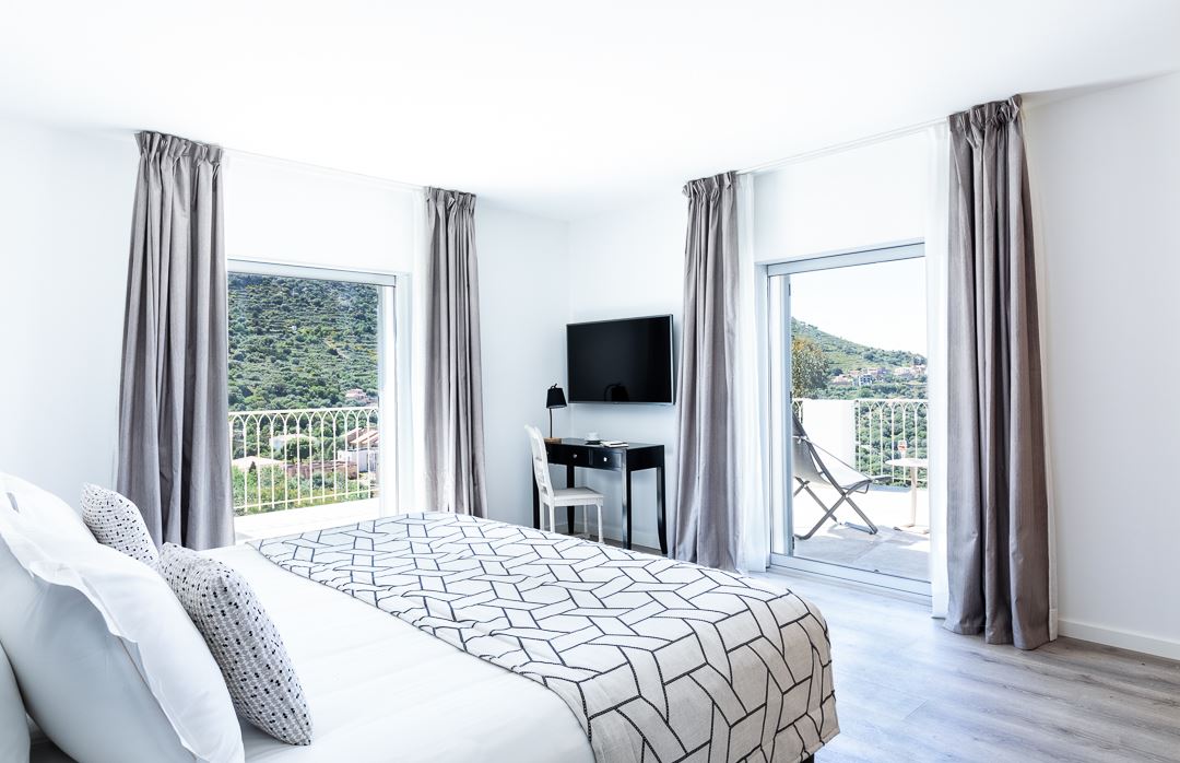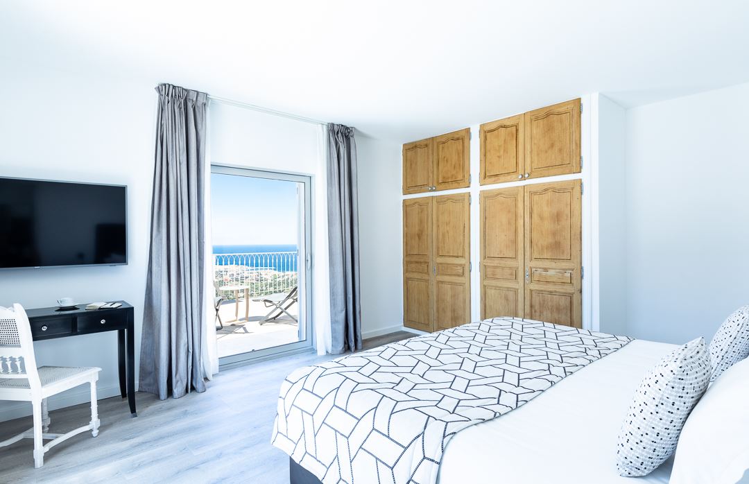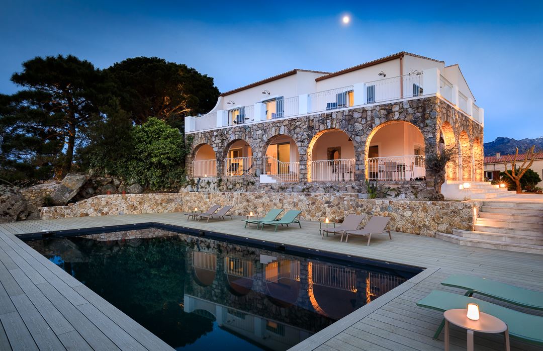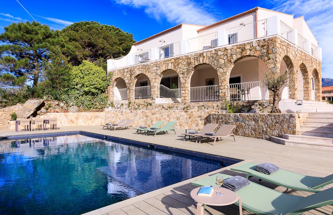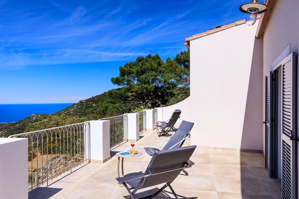 The 6 double bedrooms, each with ensuite bathroom, have access to terraces with view on the Corsican turquoise sea.