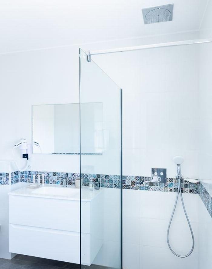 Double bedroom with terrace access, safe, television and Ensuite bathroom with shower, wc
