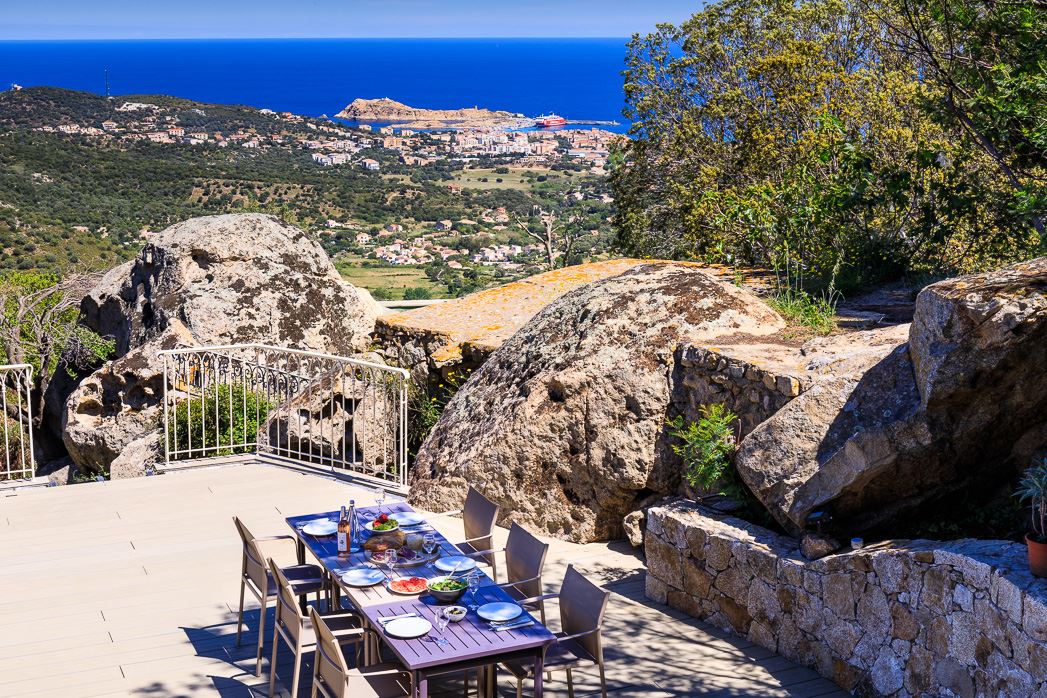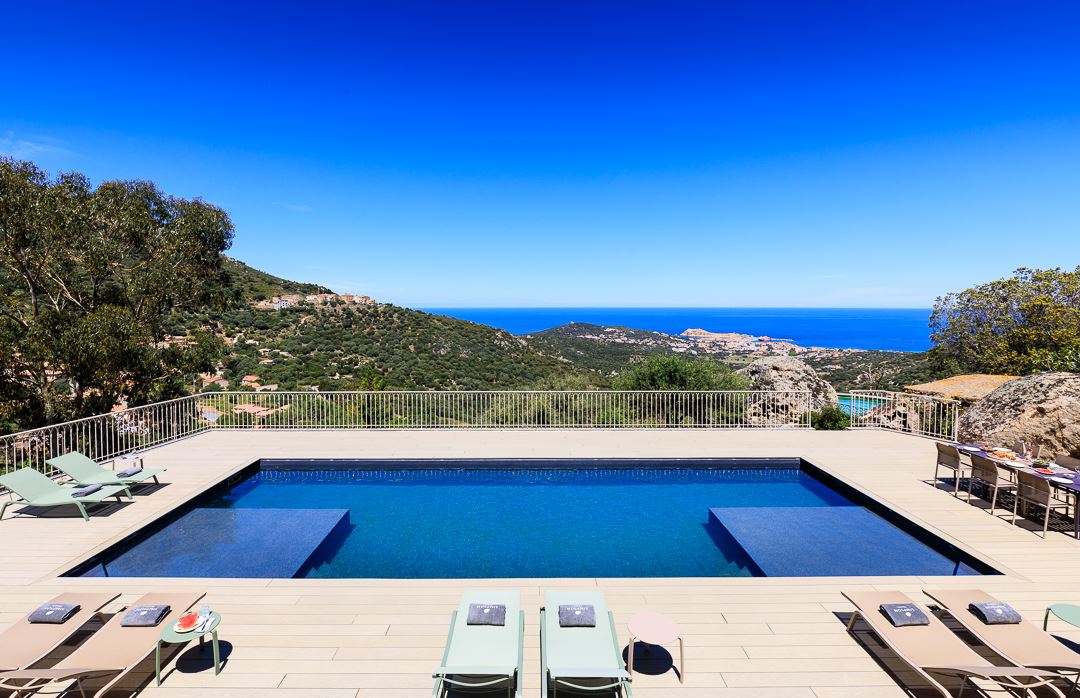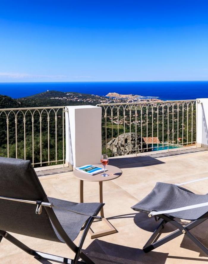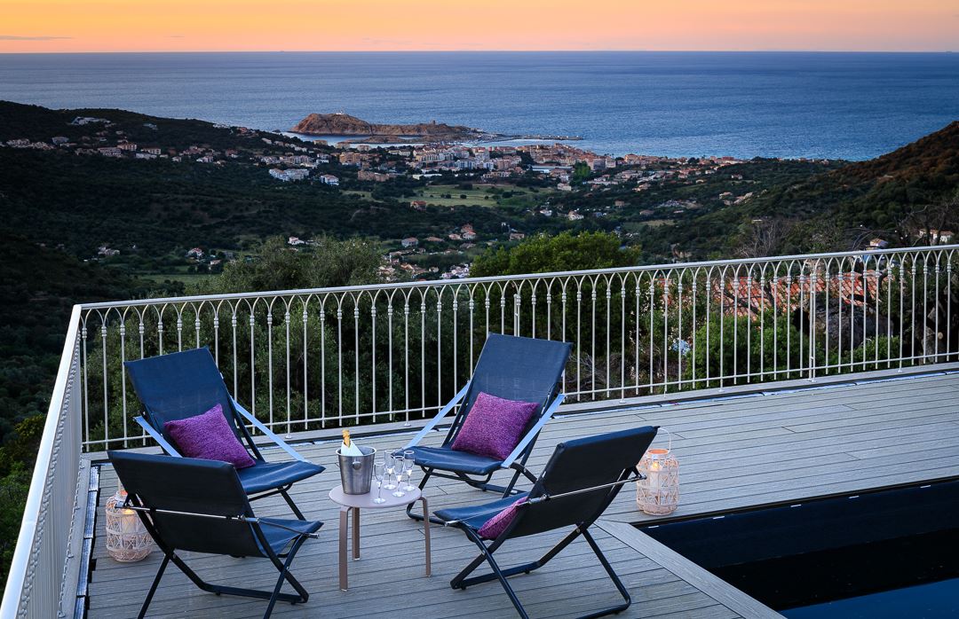 With its panoramic position, this wonderful villa offers stunning views on the coast, the charming town of Île Rousseau and the peninsula of Petra, symbol of north Corsica.