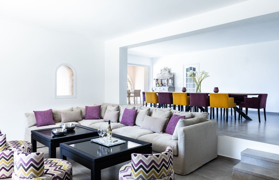 This luxury house was built to create a modern and contemporary villa, the interiors are colourful and give it a casual chic atmosphere.