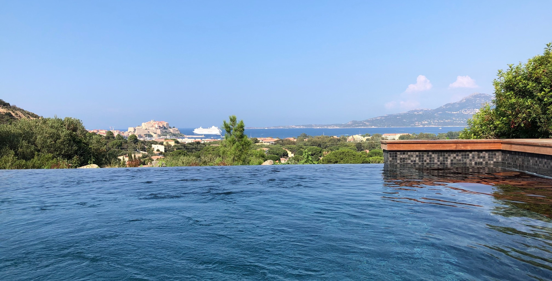 Thanks to its dominating position it offers a wonderful view on Calvi’s bay, the citadelle on one side and the mountains covered with the Corsican maquis on the other side.