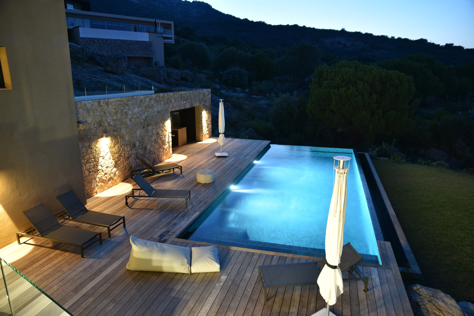 The pool house situated in front of the beautiful infinity heated pool of 13 x 5 meters, allows to fully enjoy the outdoor spaces and sea views.