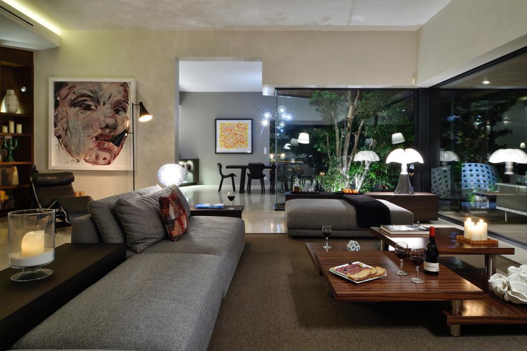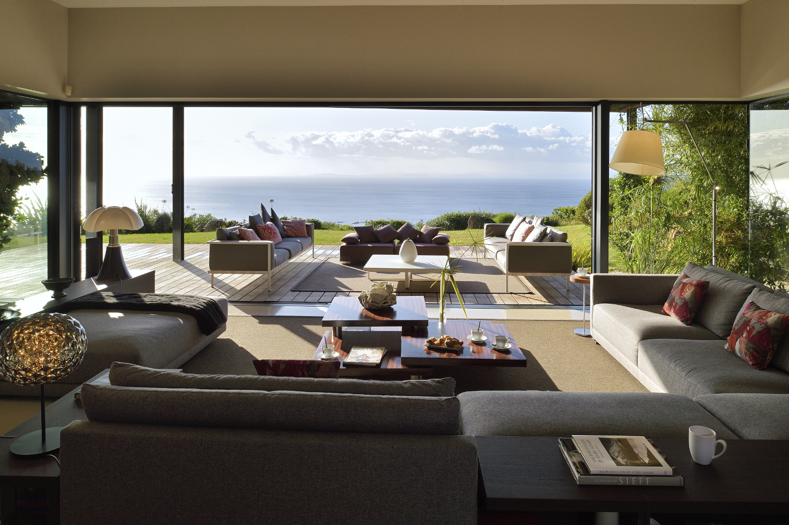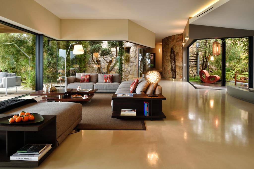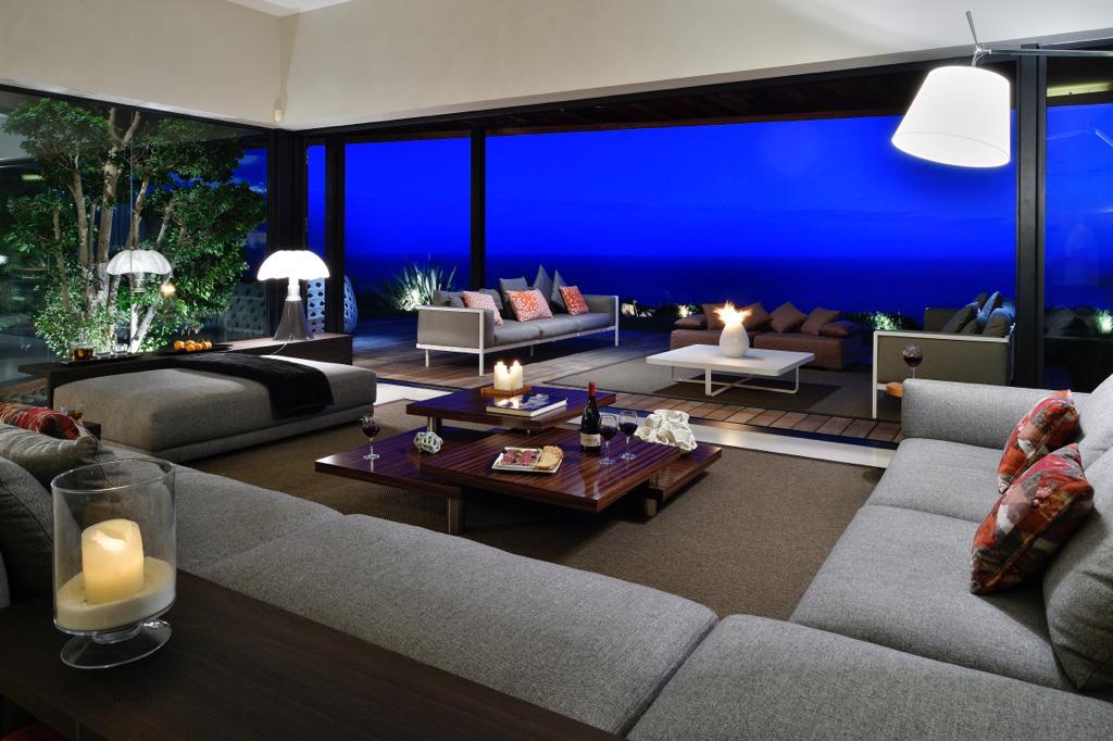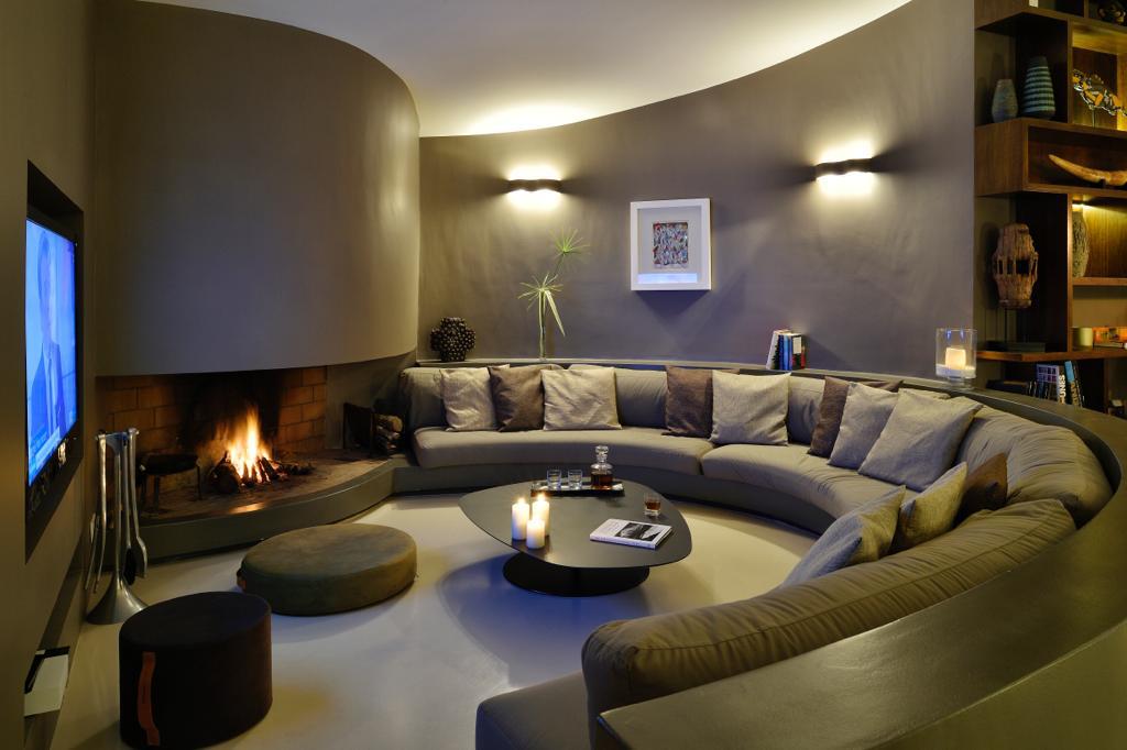 Living Room double, 120 sqm with fire place, lcd tv, internet access, ipod dock, library, sea view, garden access, terrace access and TV Room