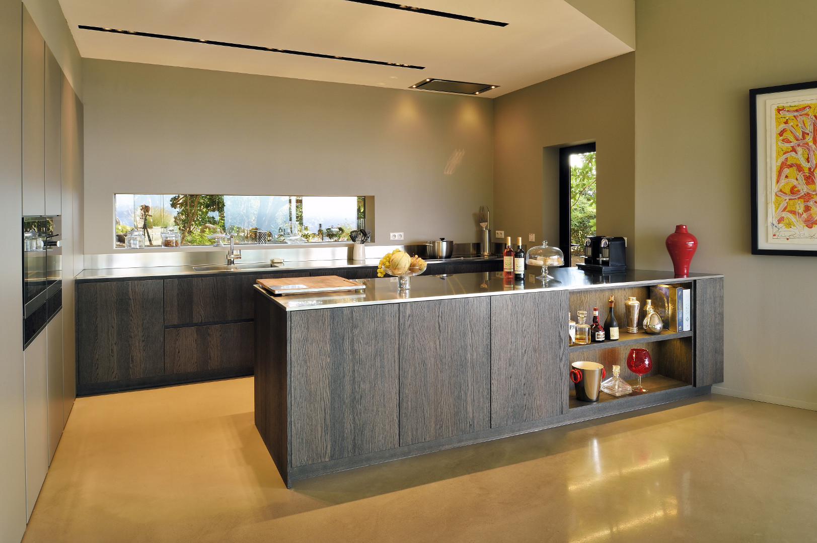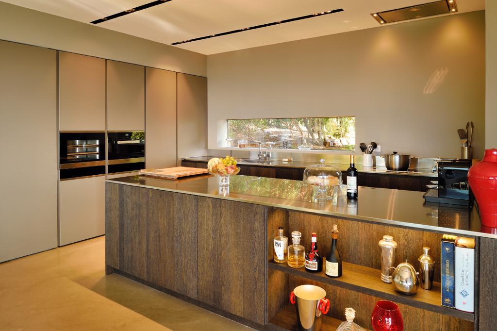 Kitchen with induction hob, electric oven, microwave oven, fridge, steam oven, wine cellar, nespresso machine, dishwasher, ice making machine, toaster, kettle and Laundry with washing machine, dryer, fridge, freezer