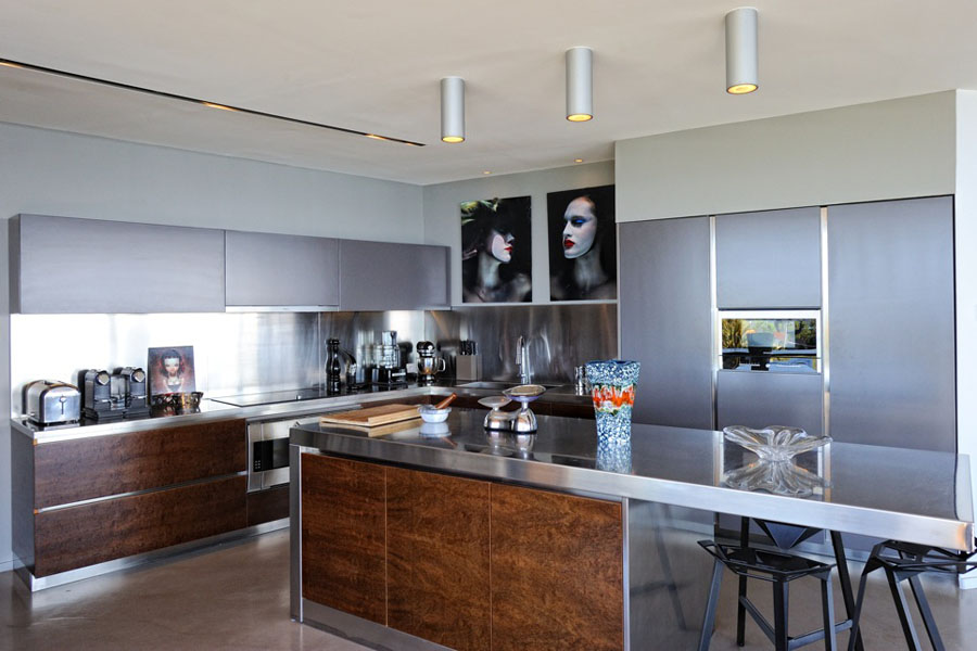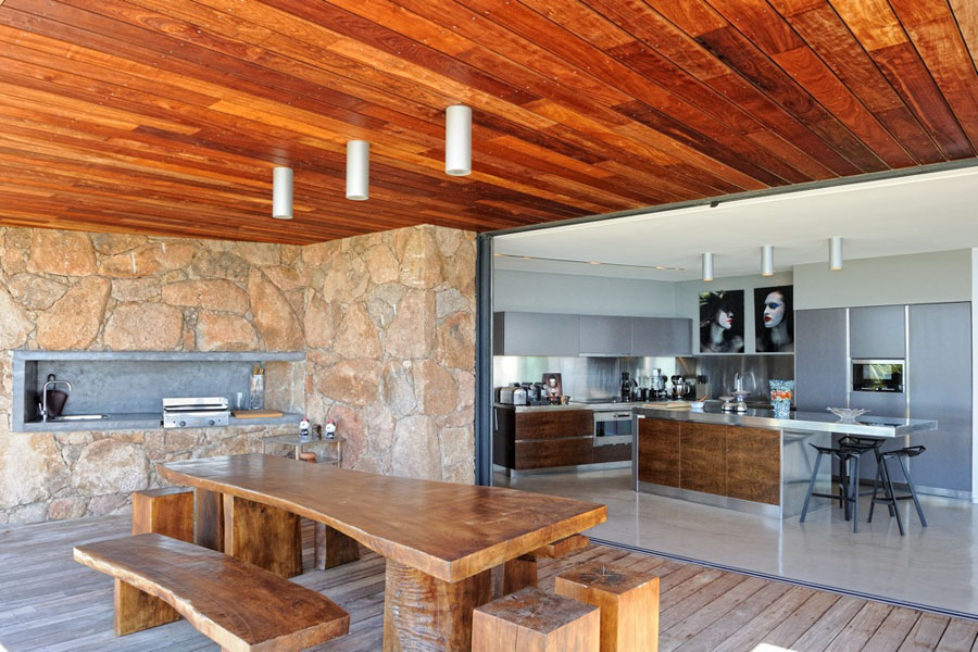 Living Room with dining area with sea view, pool view, terrace access, fire place and Open kitchen with fridge, toaster, dishwasher, microwave oven, electric oven, nespresso machine, kettle