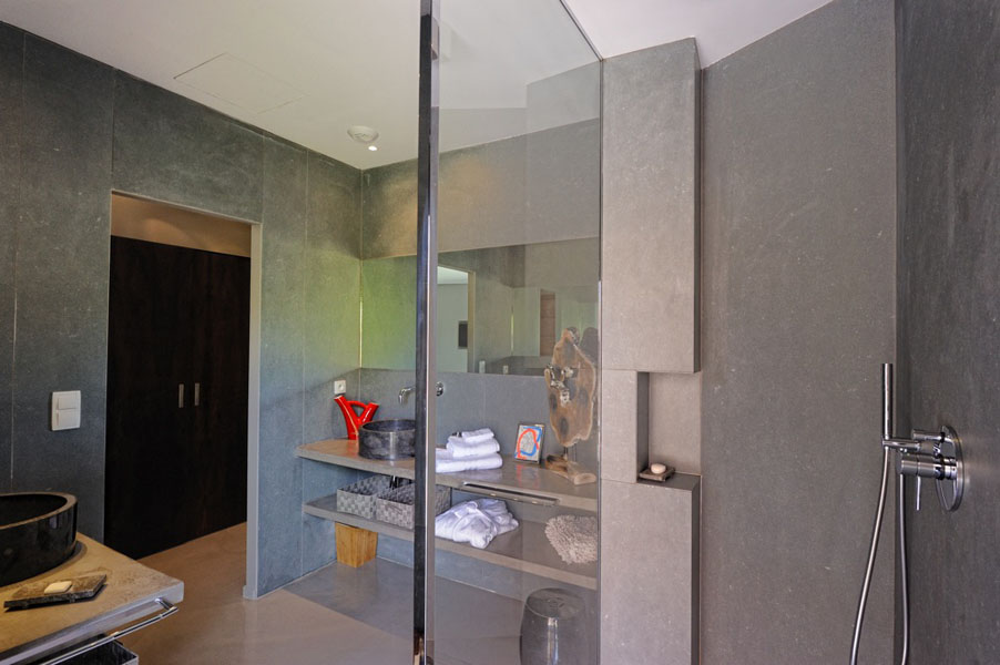 The house is a very contemporary dwelling place, boasting a pleasant architecture design. It has 7 bedrooms, 5 bathrooms, 1 hammam (steam room), a cinema room, a wine cellar, a fully equipped Gagenau kitchen (with outdoor “plancha” area). The house is articulated around a nice and large patio with a 600 years old olive tree.