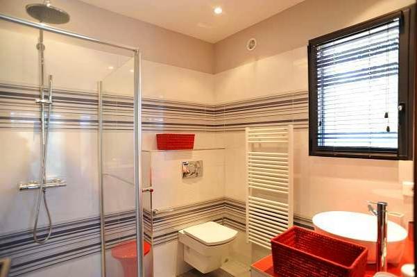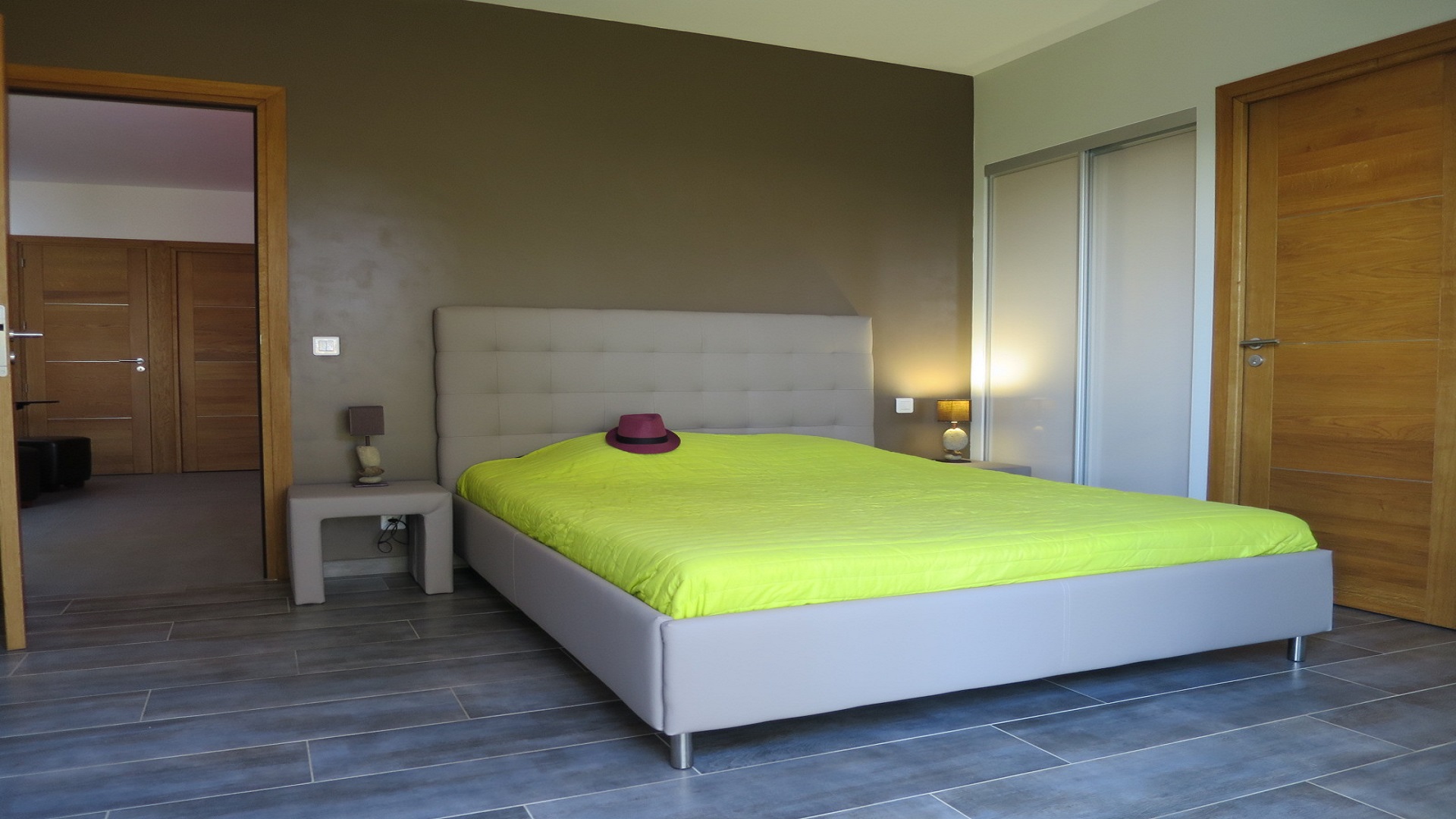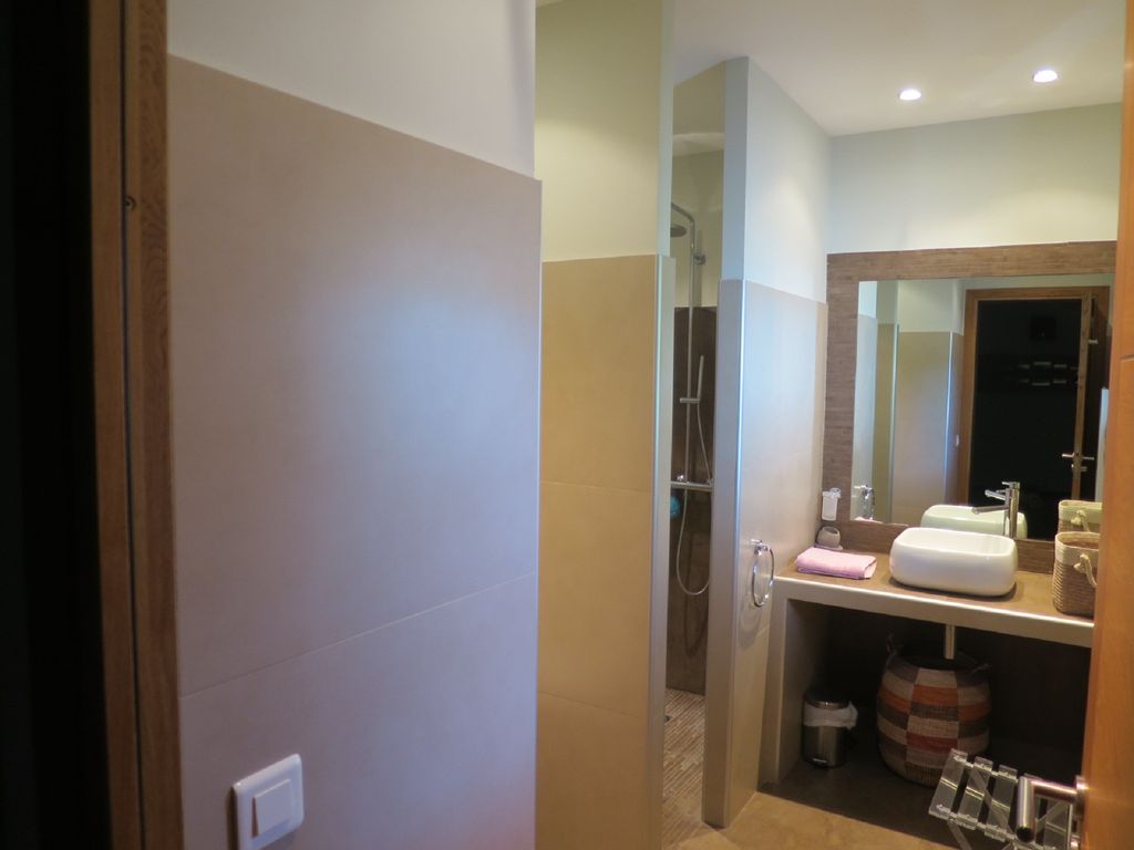Double bedroom access by 3 steps with queen-size bed, walk-in closet, balcony and Ensuite bathroom with shower, wc, double sink