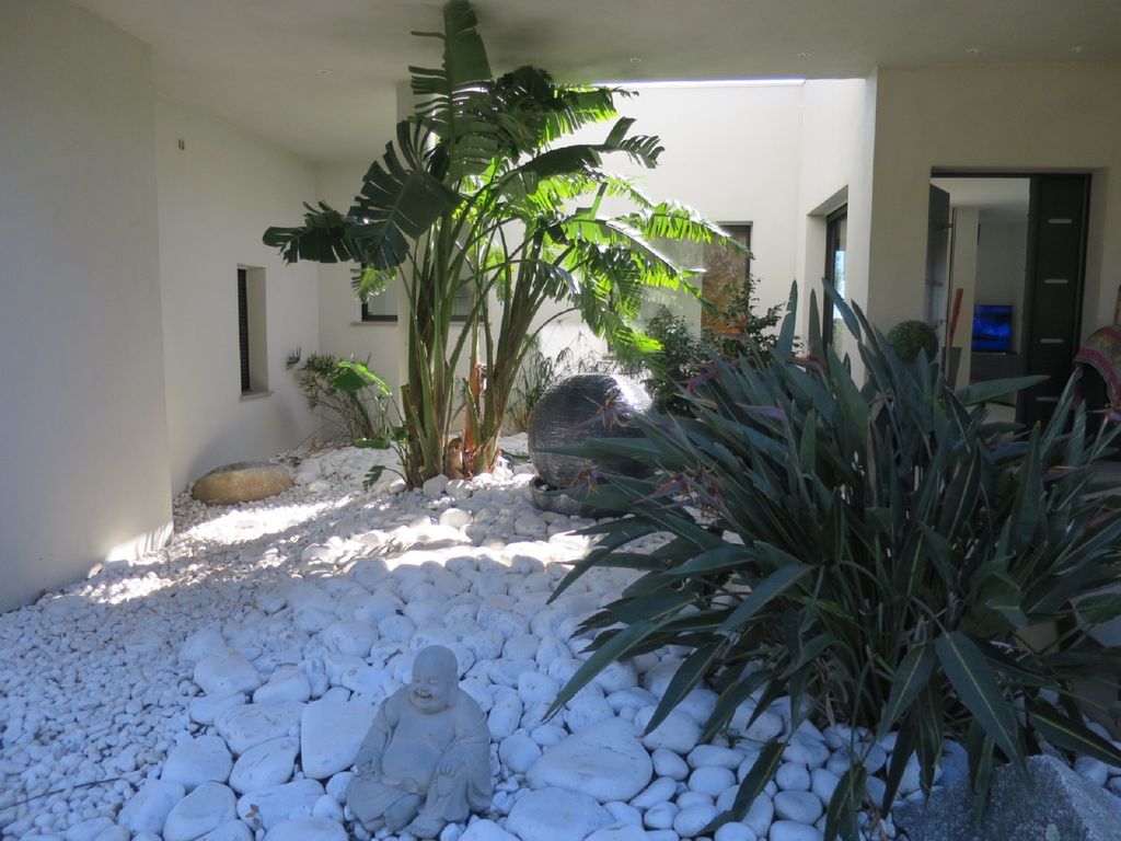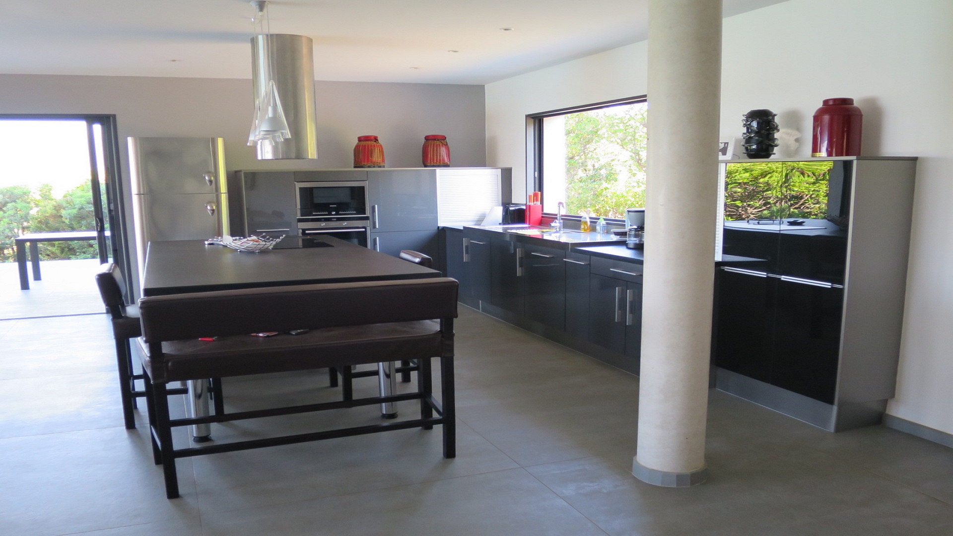 This splendid contemporary villa is ideally situated in the region of Sainte-Lucie-de-Porto-Vecchio, enjoying unique panoramic views over the Bay of Pinarellu to the south, the Bay of Fautea with its Genoese tower to the north, and the Aiguilles of Bavella to the west. Soak up the enchanting atmosphere of Corsica, be it the beach at the end of the path, bustling village life just a few minutes’ drive away, or unspoilt natural phenomena such as the rock pools along the Cavu River.