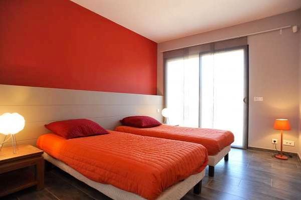 Twin bedroom access by 3 steps with single bed 90cm large, balcony and Ensuite bathroom with wc, shower, sink