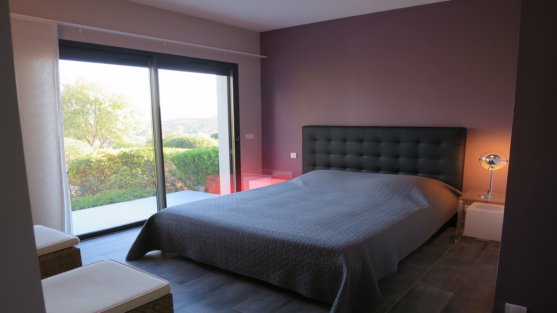 Double bedroom access by 3 steps with walk-in closet, queen-size bed, balcony and Ensuite bathroom with wc, shower, sink