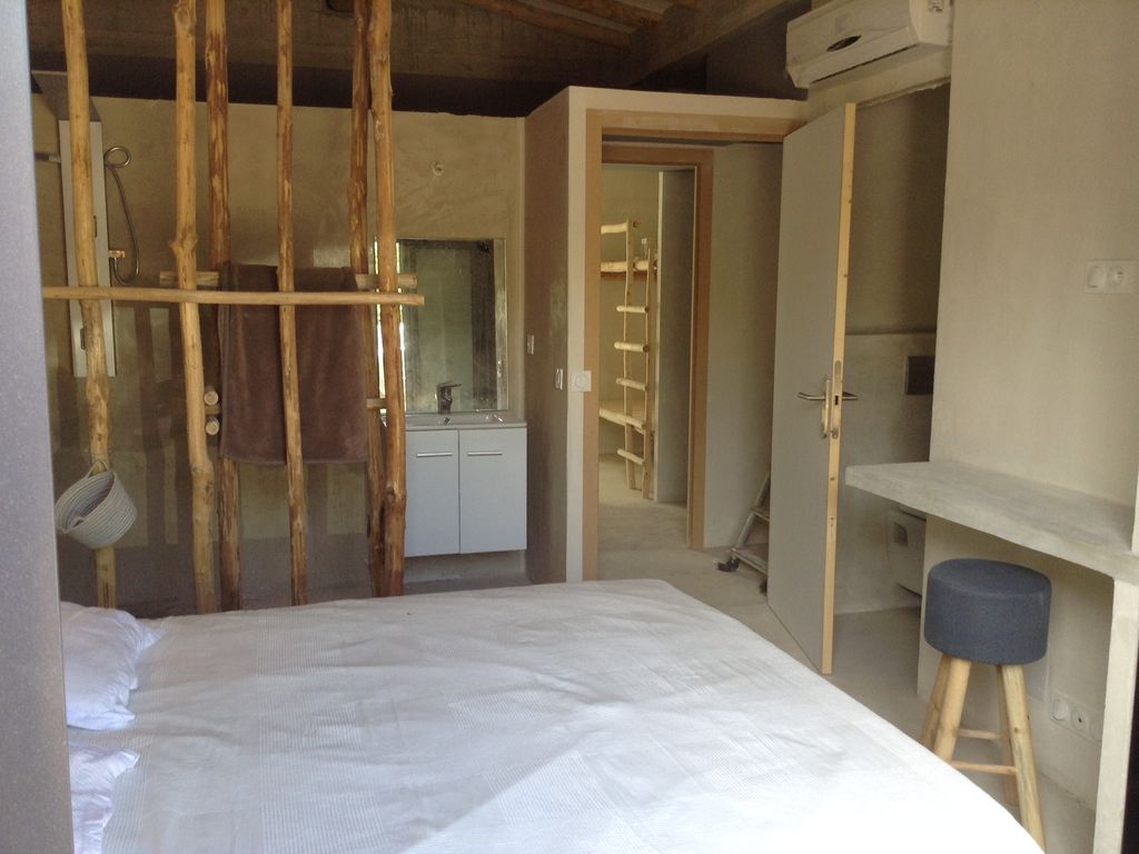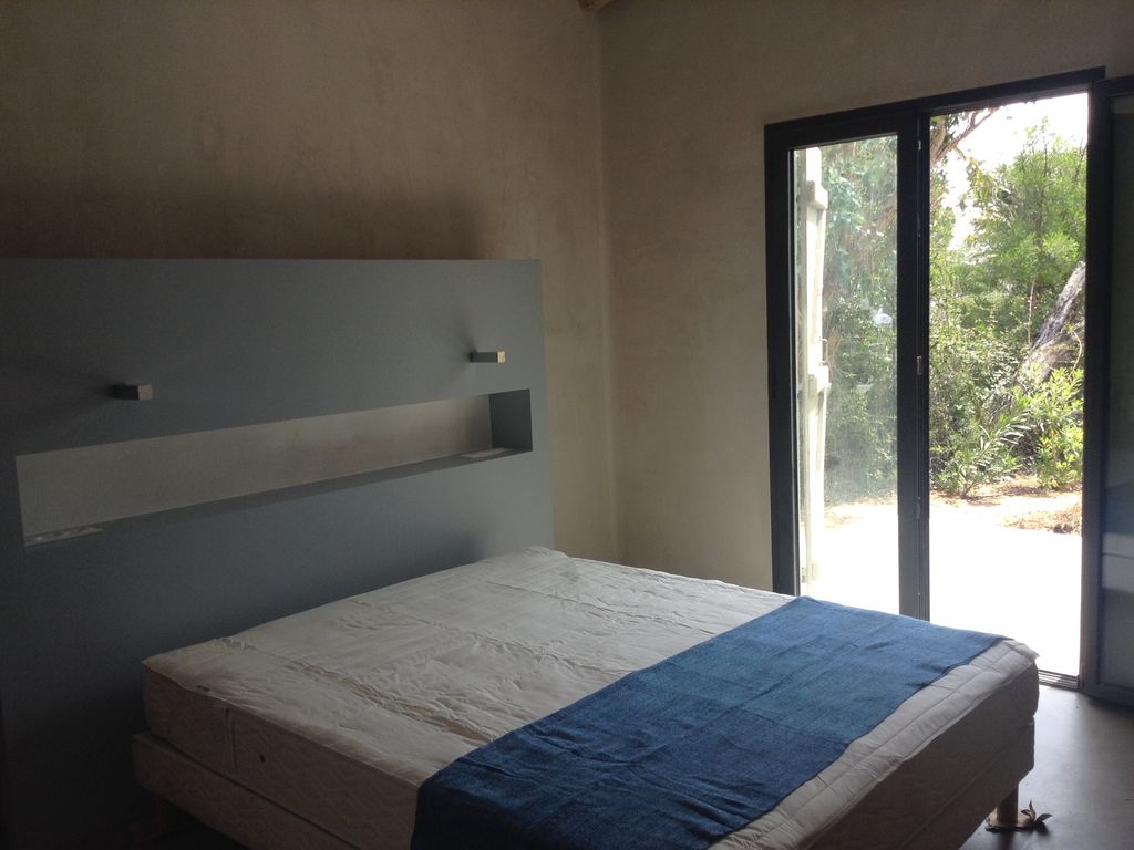 Double bedroom next to the mezzanine which has a sofa bed (140cm) with queen-size bed, air conditioning, safe, convertible sofa bed (2 pers), sea view and Equipped Terrace with outside toilet with sea view, outdoor shower