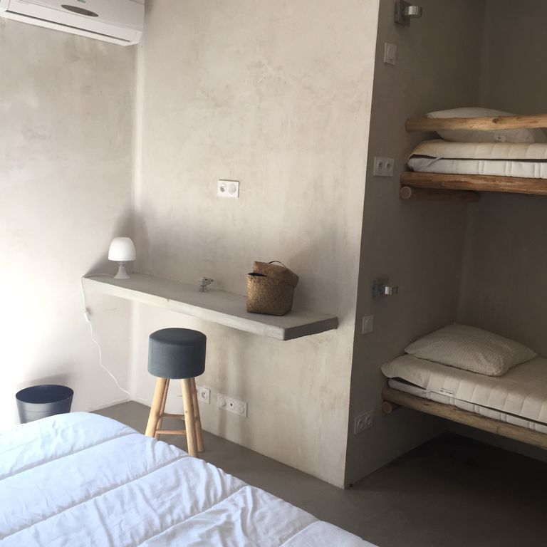 Double bedroom alcove with bunk beds (2 x 80cm) with sea view, air conditioning, safe and Ensuite bathroom (no door from the bedroom) with bath and Terrace
