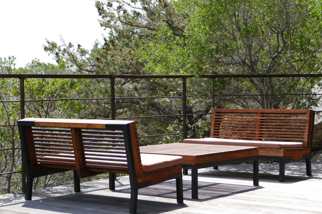 The villa is surrounded by Corsican scrubland called “maquis” and expands itself along the curves of the rocky flank.