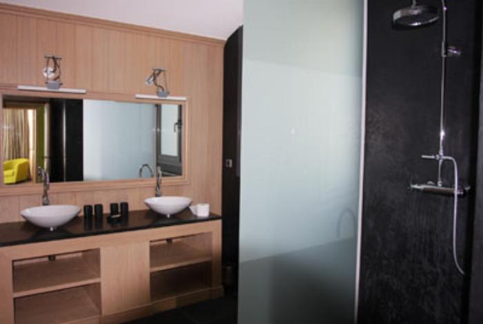 Double bedroom with air conditioning, sea view, king-size bed and Independant Bathroom (in front of the bedroom) with shower and Toilets