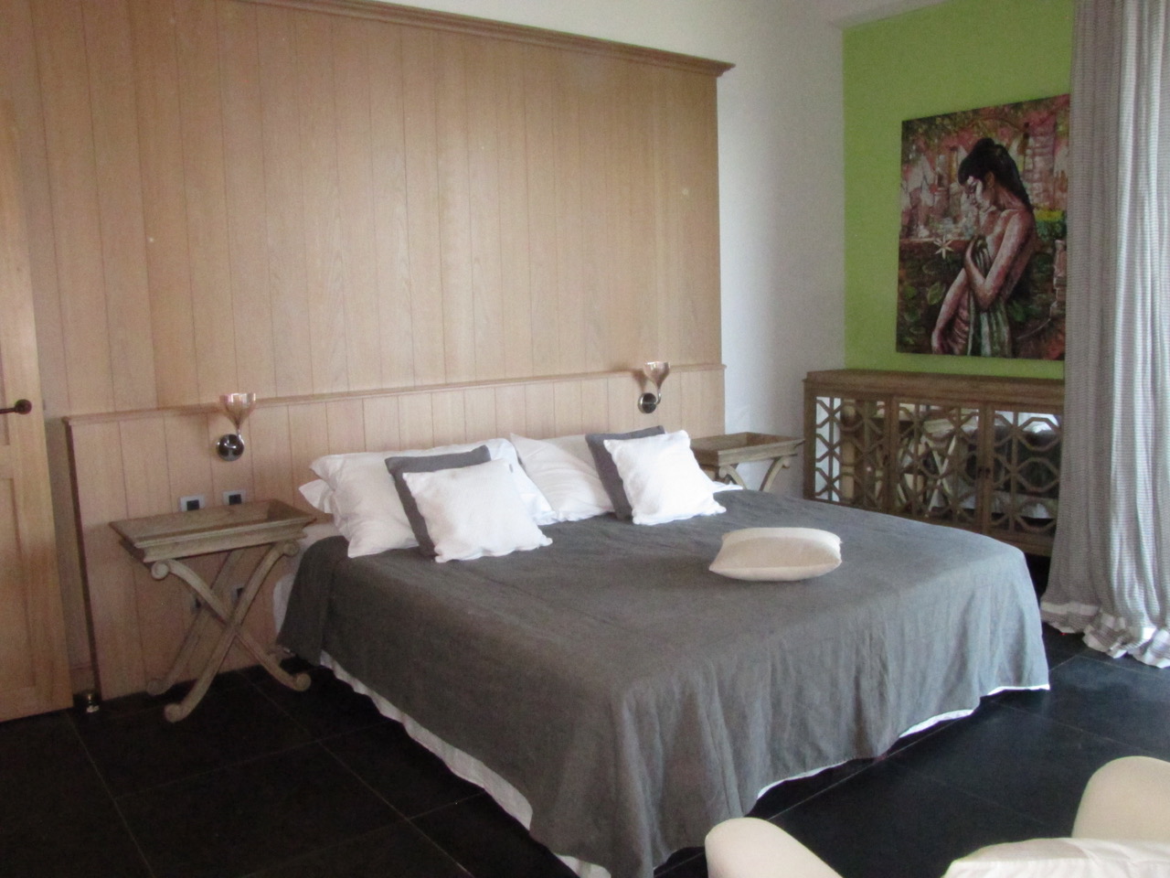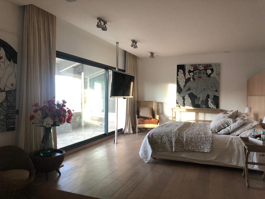 Double bedroom with sea view, king-size bed, air conditioning, terrace access and Ensuite bathroom with shower and Toilets