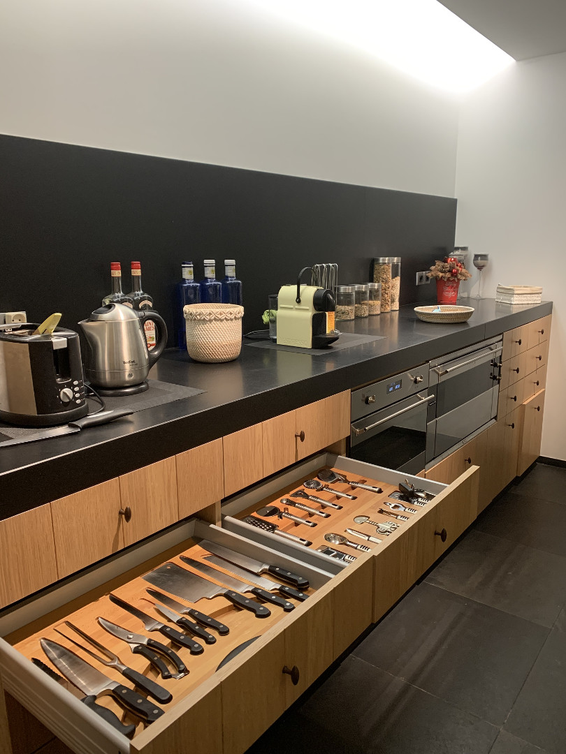 Kitchen with microwave oven, freezer, dishwasher, fridge, terrace access, coffee machine, gas stove, electric oven