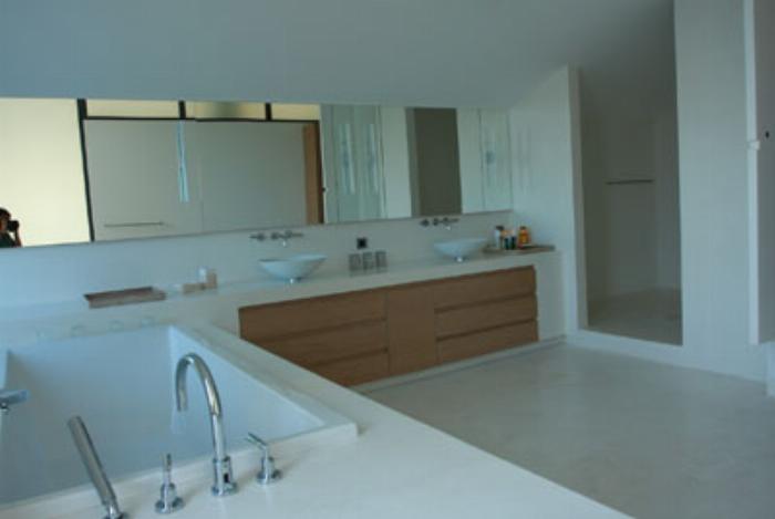 Master bedroom with king-size bed, sea view, television and Ensuite bathroom with bath, shower and Toilets