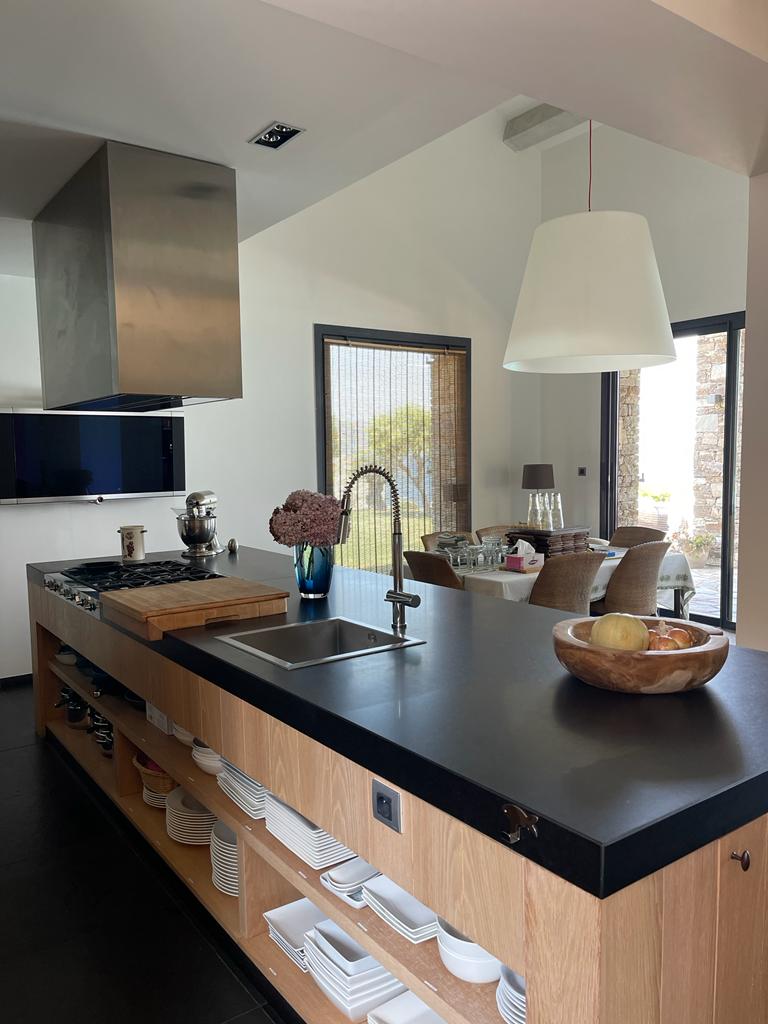 This magnificent villa, built in 2007, is certainly unique in Corsica by its seafront position, the quality of the finishing touches of the architecture and its layout. The villa is very soberly decorated and very bright: All rooms are large and both interior and exterior volumes are very pleasant. A large cathedral lounge overlooks the pool, a TV room on the back of the house, outdoor furniture carefully chosen with great taste, and 3 bedrooms, each with its own bathroom.