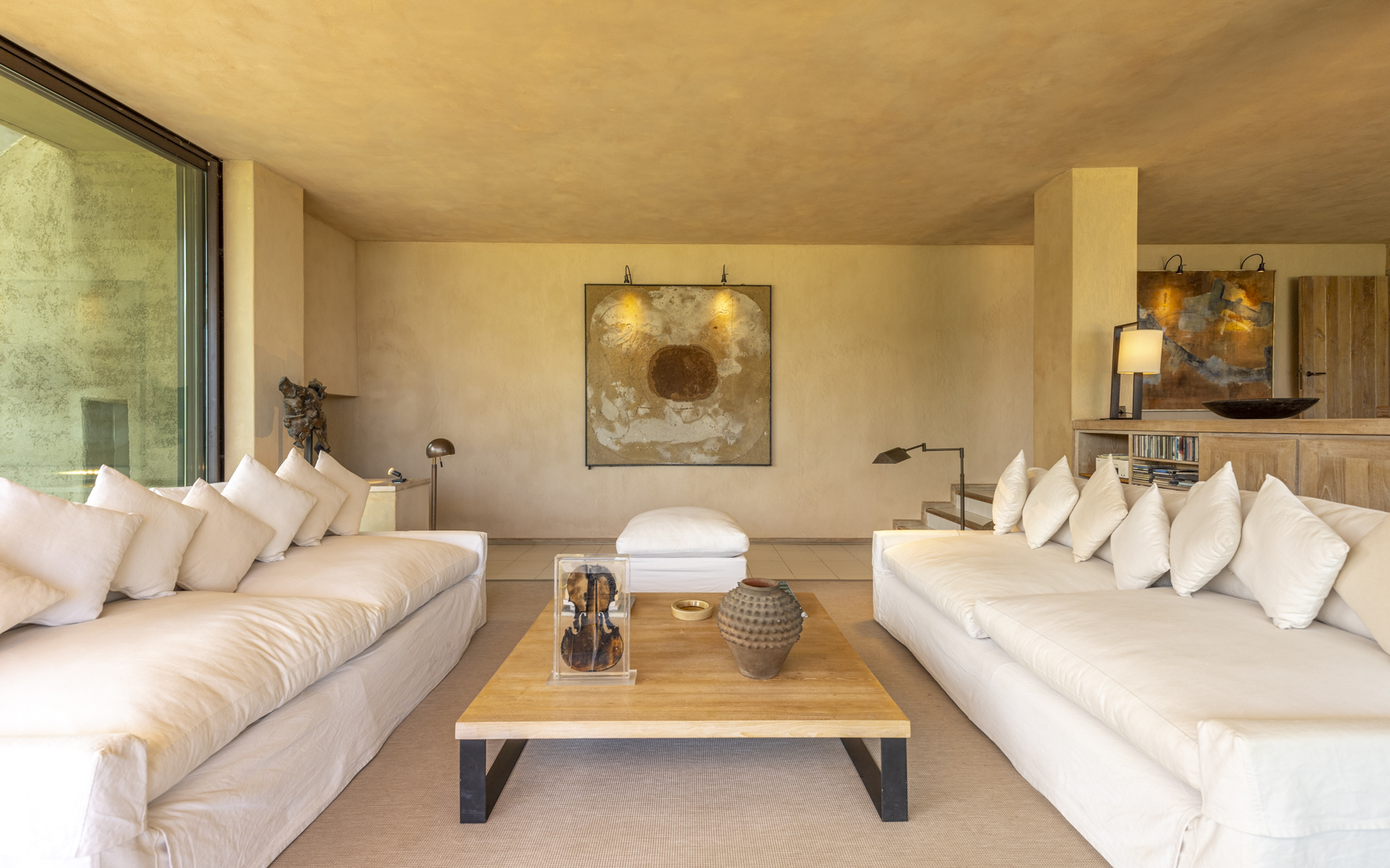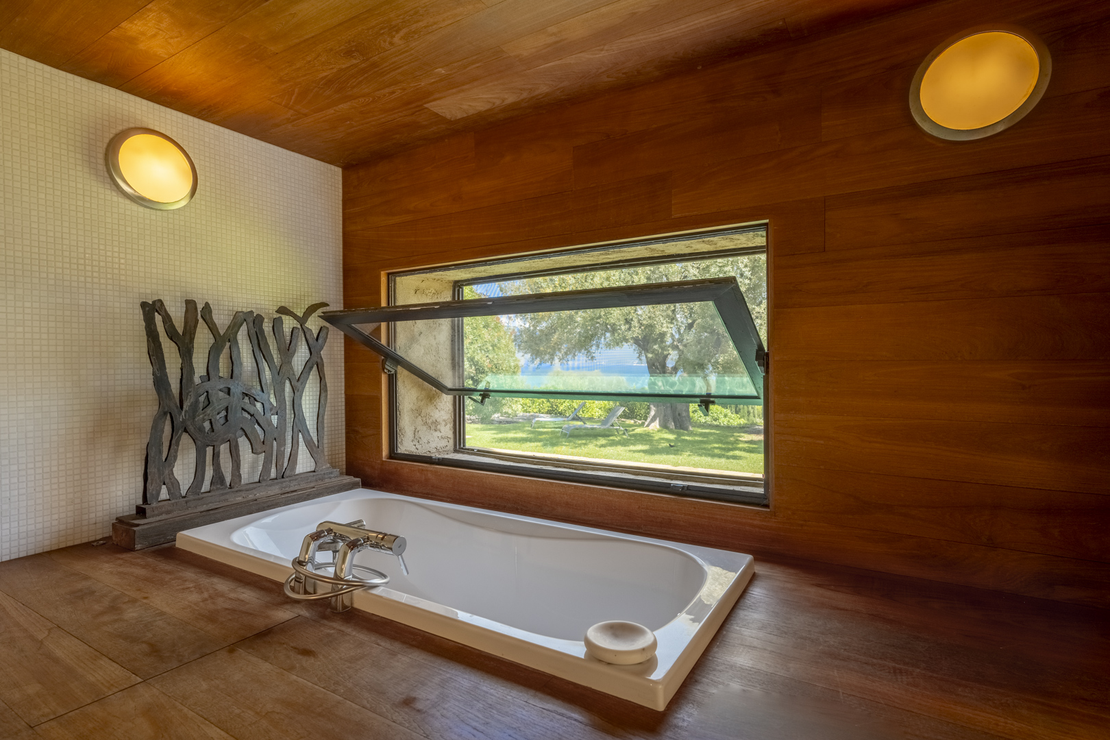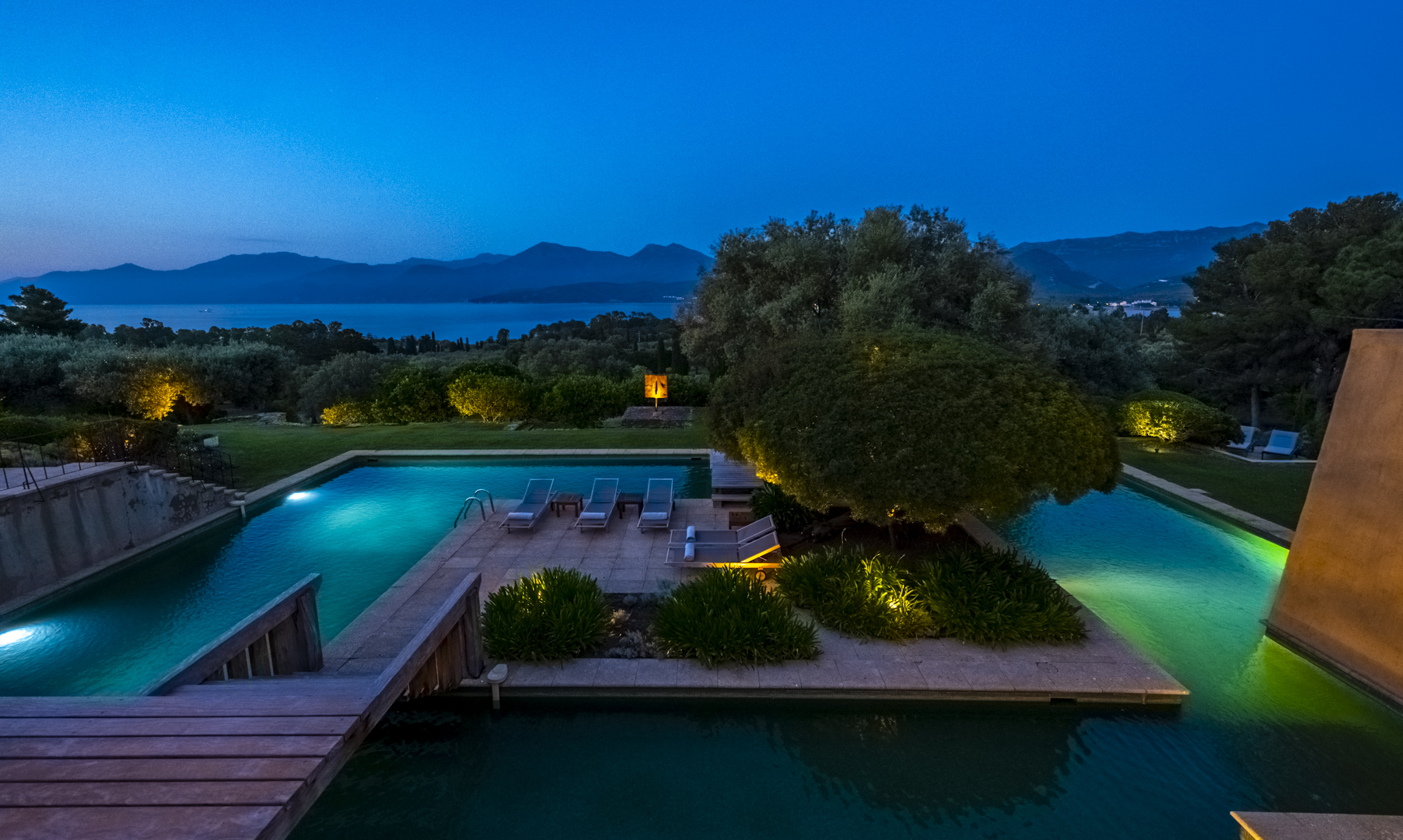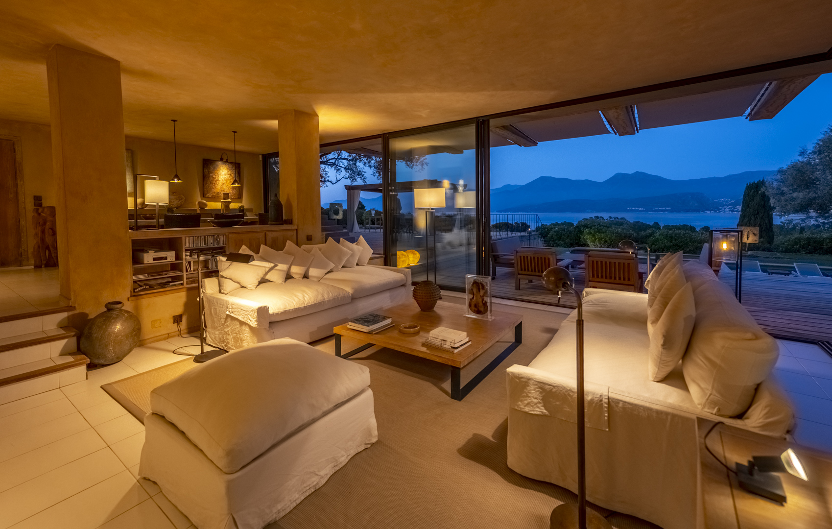 Architect's house built in the 80s, this property is quite amazing. The surface of the swimming pools reaches a total of nearly 250 sqm, and a whole game of swimming lane runs through the gardens and terraces. From the inside of the master bathroom, it is possible to get in the water and swim to the terraces of the living room. The distant sea view is omnipresent from most rooms, as well as the lush vegetation. The property has been the subject of several reports on architecture and extraordinary Mediterranean gardens, this house is simply unique.