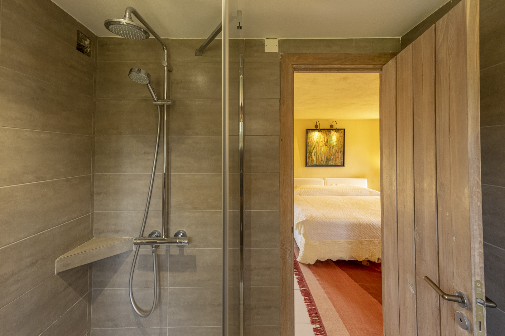 Double bedroom yellow with desk corner with terrace access, sea view, air conditioning, internet access and Independant Bathroom with shower, wc