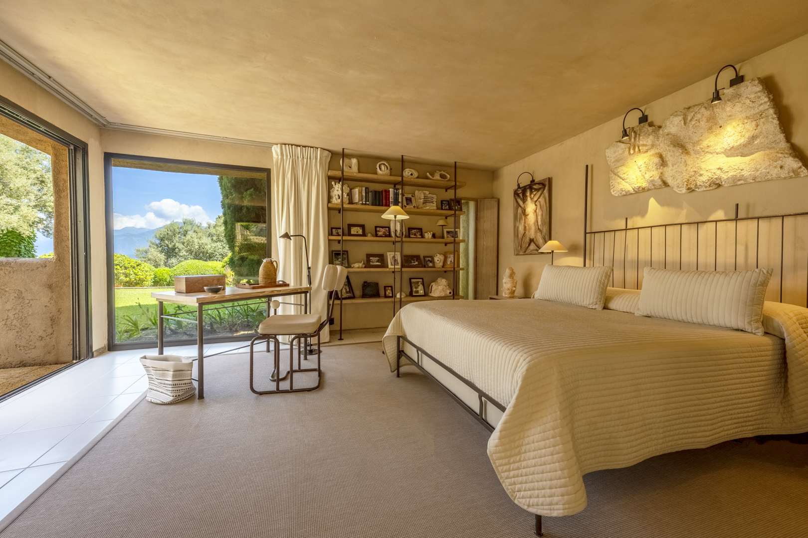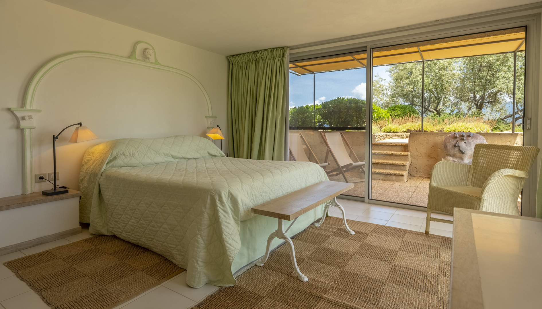 Double bedroom green with a desk corner with walk-in closet, terrace access, air conditioning, sea view and Independant Bathroom with shower, bidet and Toilets