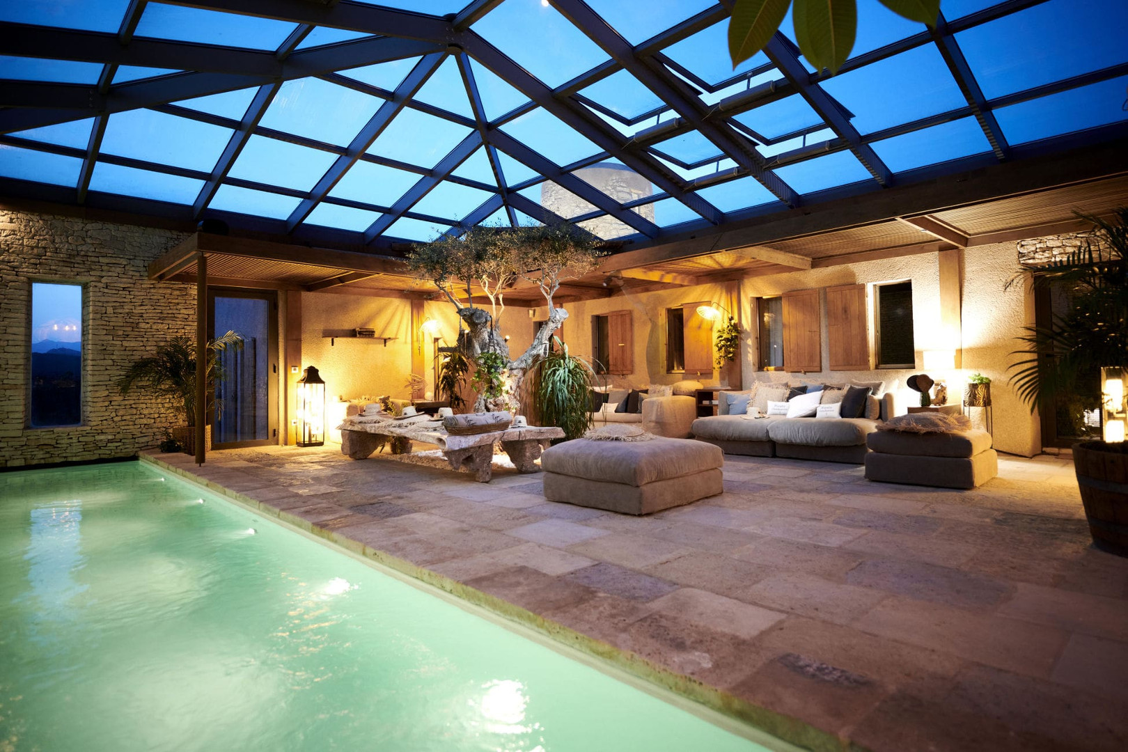 Swimming pool private, indoor, (9,5m X 3m), heated, protected by a curtain.