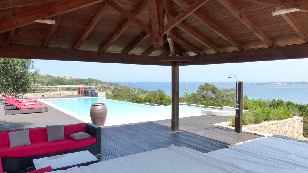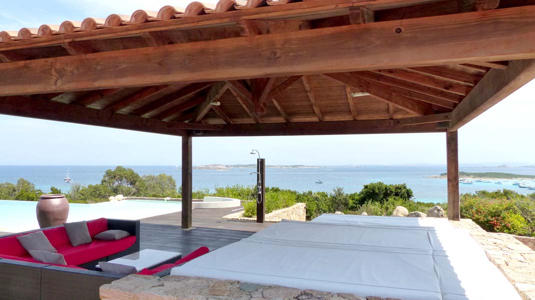 Amazing 8 bedrooms villa located at the very south of Corsica, facing the Lavezzi Islands, overlooking Piantarella Lagoon. Made of wood and marble, this 600 sqm meter villa enjoys all modern comfort, and magnificent sea views. Six air-conditioned bedrooms welcome up until 12 guests and the staff apartment, totally independent can sleeps 4 people. You will appreciate the large 500 sqm teak terrace and the infinity swimming pool, with a wonderful outdoor living-dining area... Each bedroom and bathroom is totally furnished with all the equipment you need for a comfortable stay. A video surveillance system will ensure that your tranquility will not be disturbed.