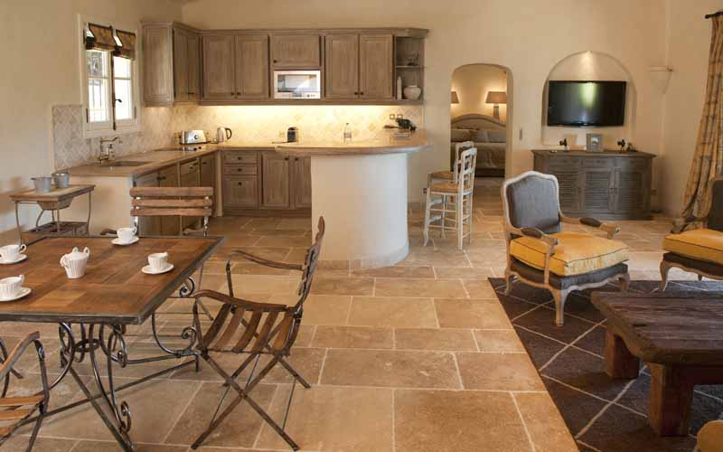 On a private domain of 30ha, only 6km from beaches, and very near two other houses we propose for rent, this luxury villa exudes the charm of the rustic and authentic dwellings of the Provencal region. In the heart of the domain, its location ensures absolute tranquility in the middle of a nice Mediterranean greenery.