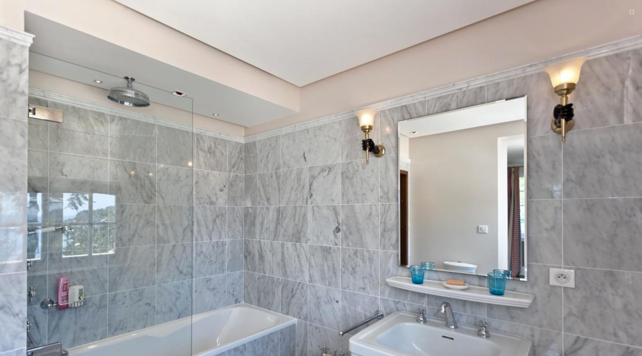 Spacious family house of character with superb view on the park and on the sea from all receptions and bedrooms. The property is protected by a magnificent vegetation and benefits from a Charming flowered terrace facing the sea.