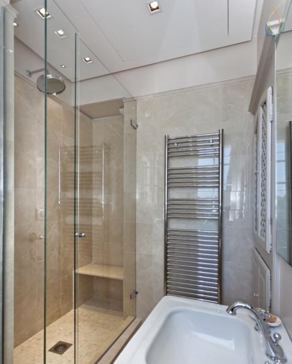 Twin bedroom with sea view with terrace access, single bed 90cm large, sea view and Ensuite bathroom with shower, bath and Terrace