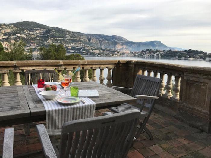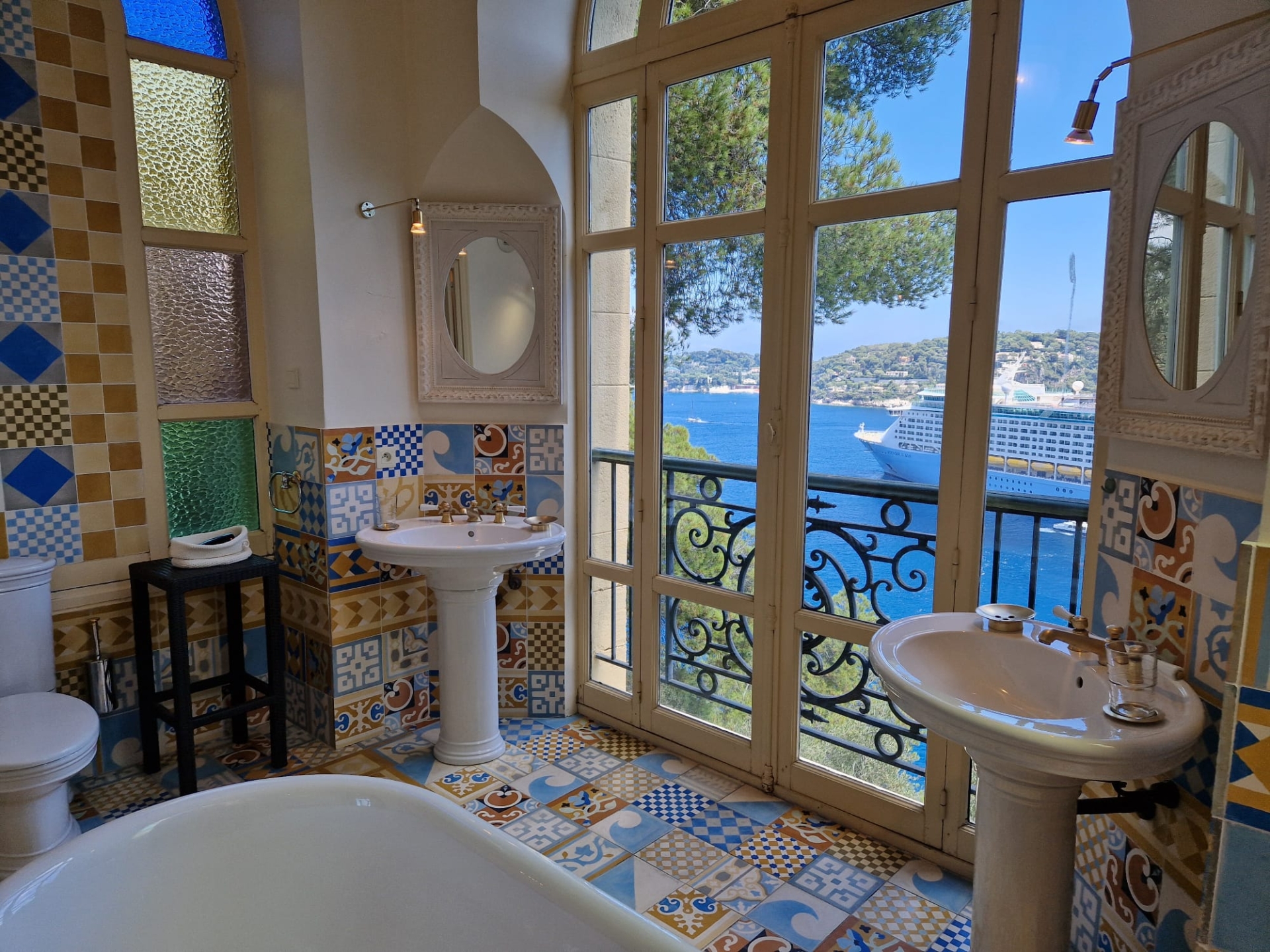 On the Villefranche Bay, 12 km from Nice Internationnal Airport, and 15 km from Monaco. Facing Cap Ferrat, Uniquely located on the coast, with direct access to the sea, heatd swimming pool.