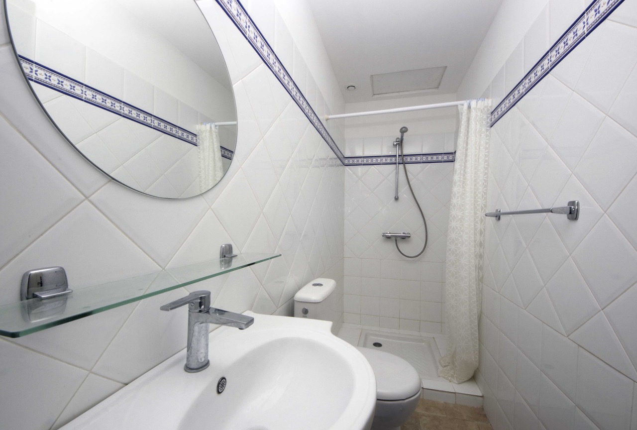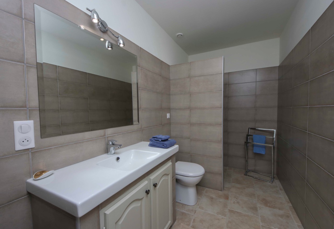 Double bedroom with queen-size bed, terrace access and Ensuite bathroom with shower, wc