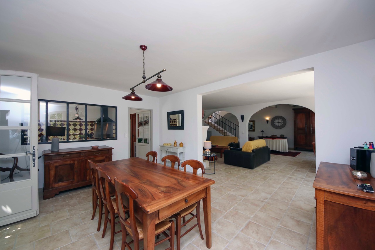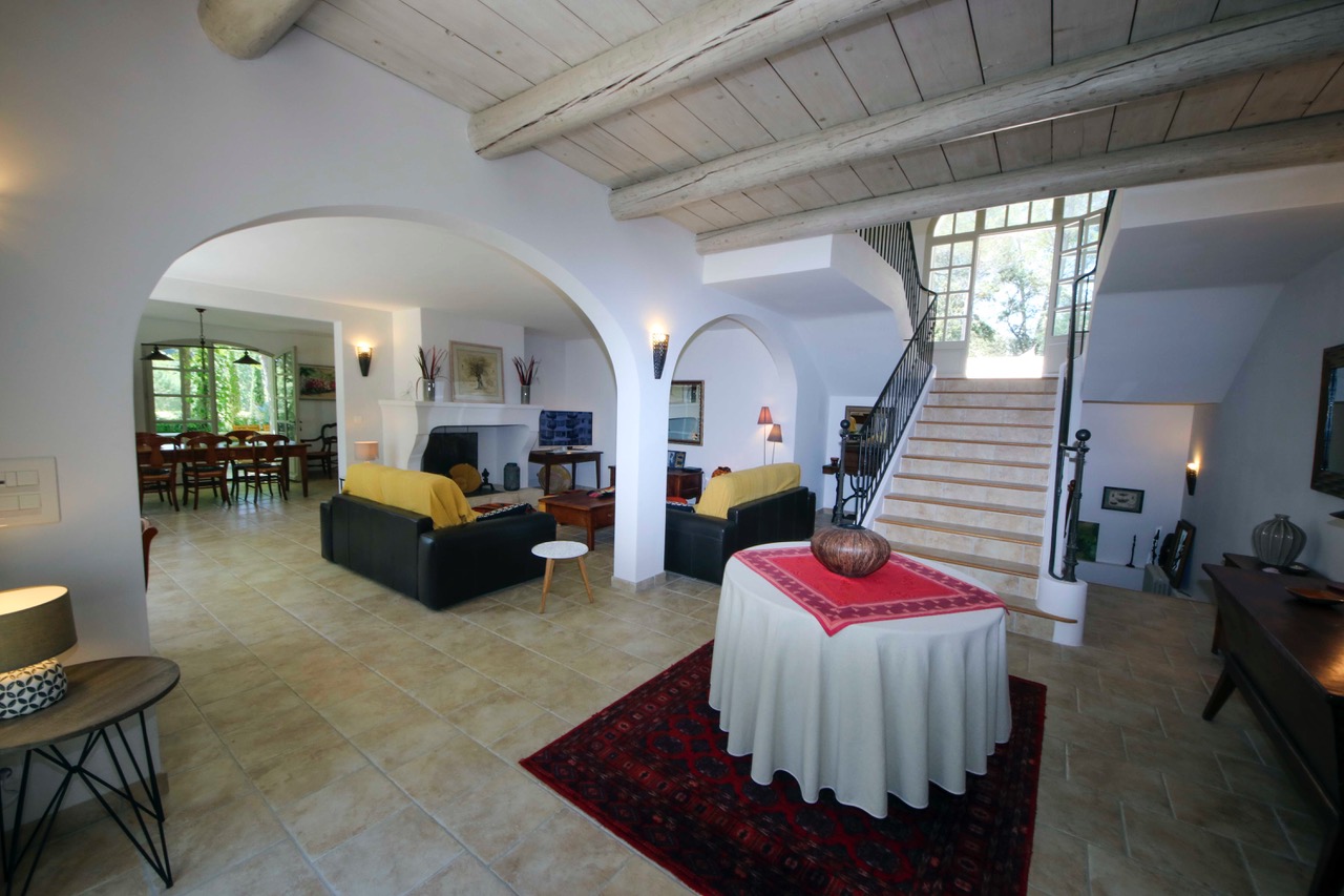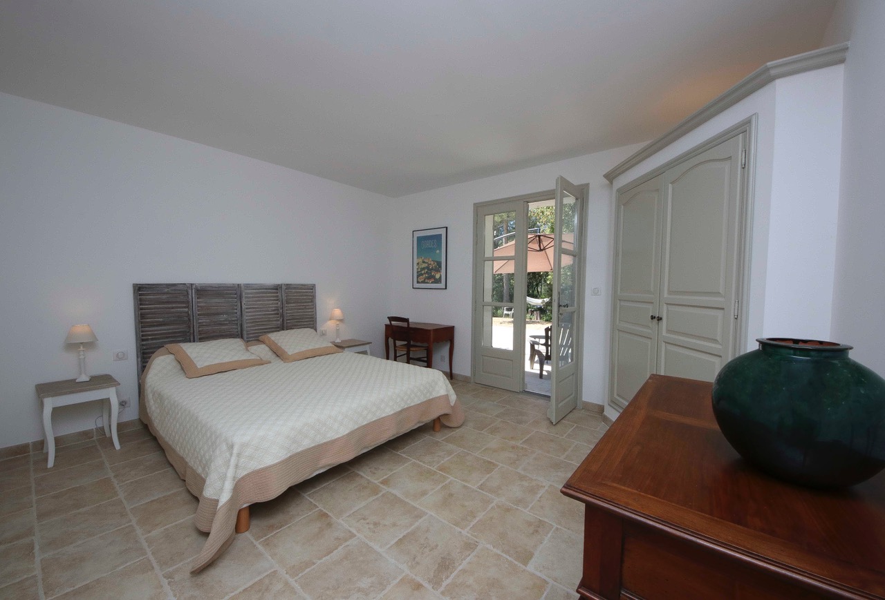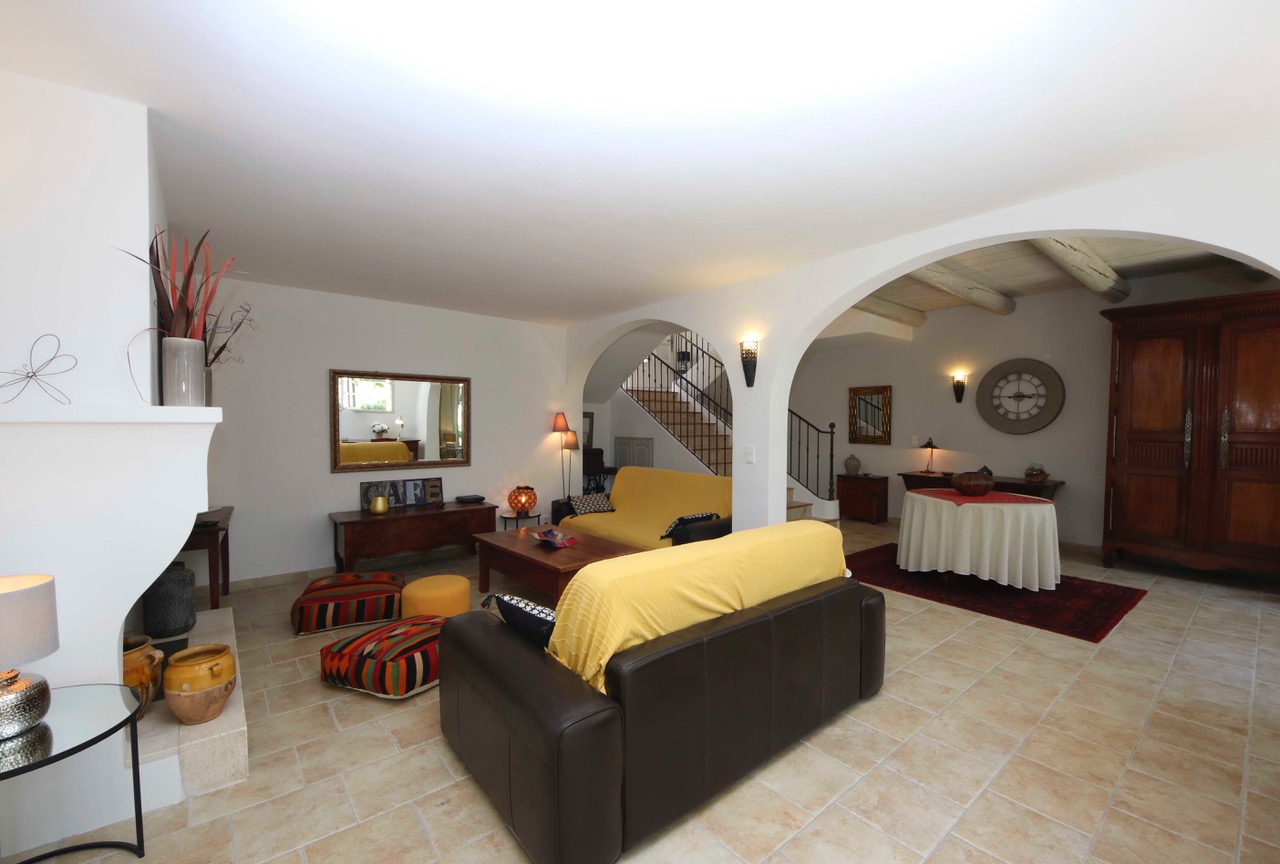 The particularity of this beautiful building is that it is on one level, both on the ground floor and on the first floor. Two large independent terraces each floor in the large garden so that you join the exteriors from the bedrooms and living rooms. At the same level as the basic terrace, a dining room is located under the orange grove. A little further a few steps away, you will pass the gate to discover a large 10.50m long swimming pool, surrounded by sun loungers and a pool house. The space is secure for more tranquility.