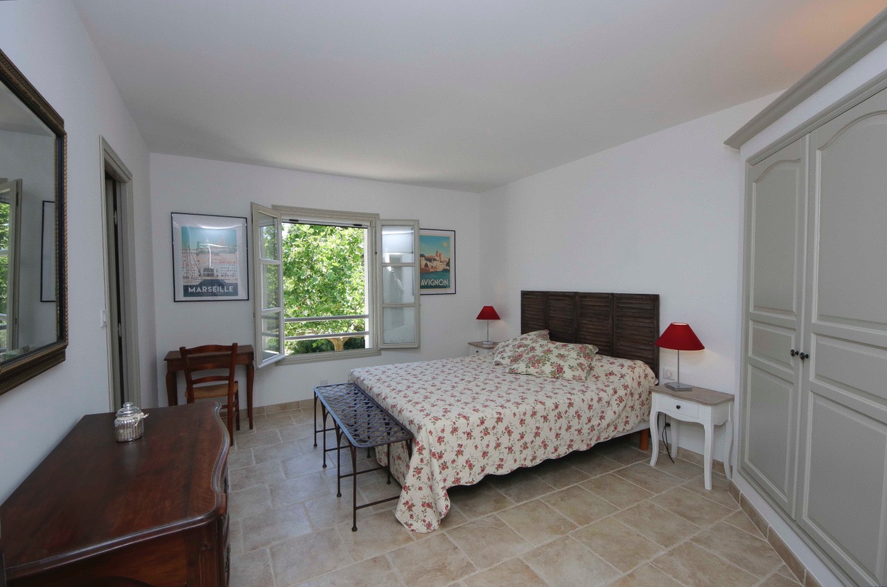 Nestled in lush greenery, this large Provencal farmhouse is located in the heart of Saint-Rémy-de-Provence and shares a calm and relaxing environment. Ideal for holidays with friends or large family, you will find here the perfect place for all together while keeping a part of privacy. Able to accommodate up to 15 guests, it benefits from 300 m2 of space in which 7 bedrooms and adjoining bathrooms are distributed. Very simple in design, this farmhouse is easy to live with without being overloaded, which will suit you perfectly if you are traveling with children.