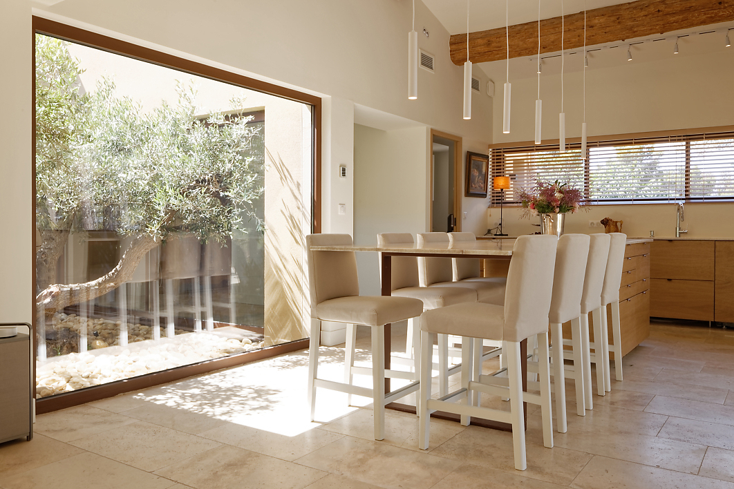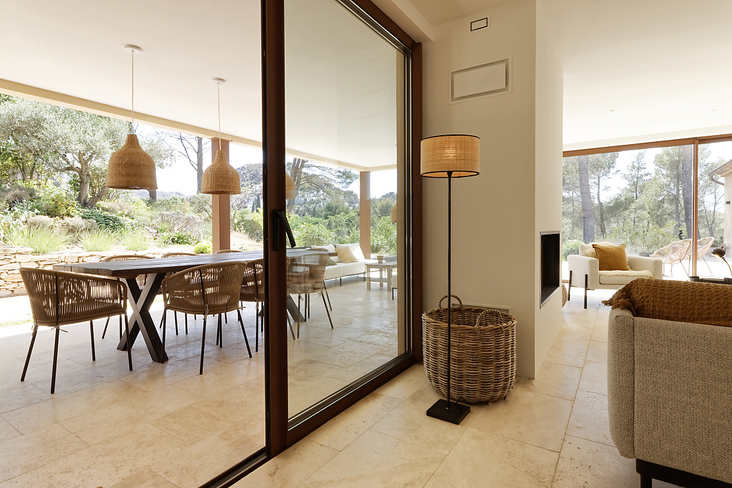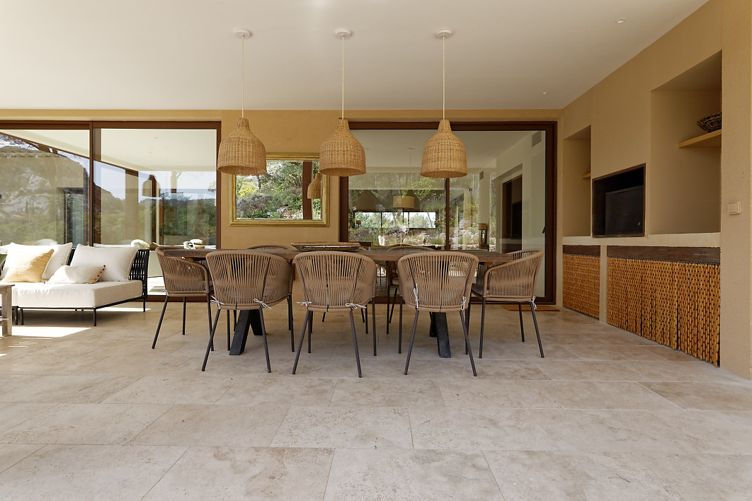 Kitchen with dining area open to the outside with kettle, dishwasher and Covered and equipped Terrace with large dining table