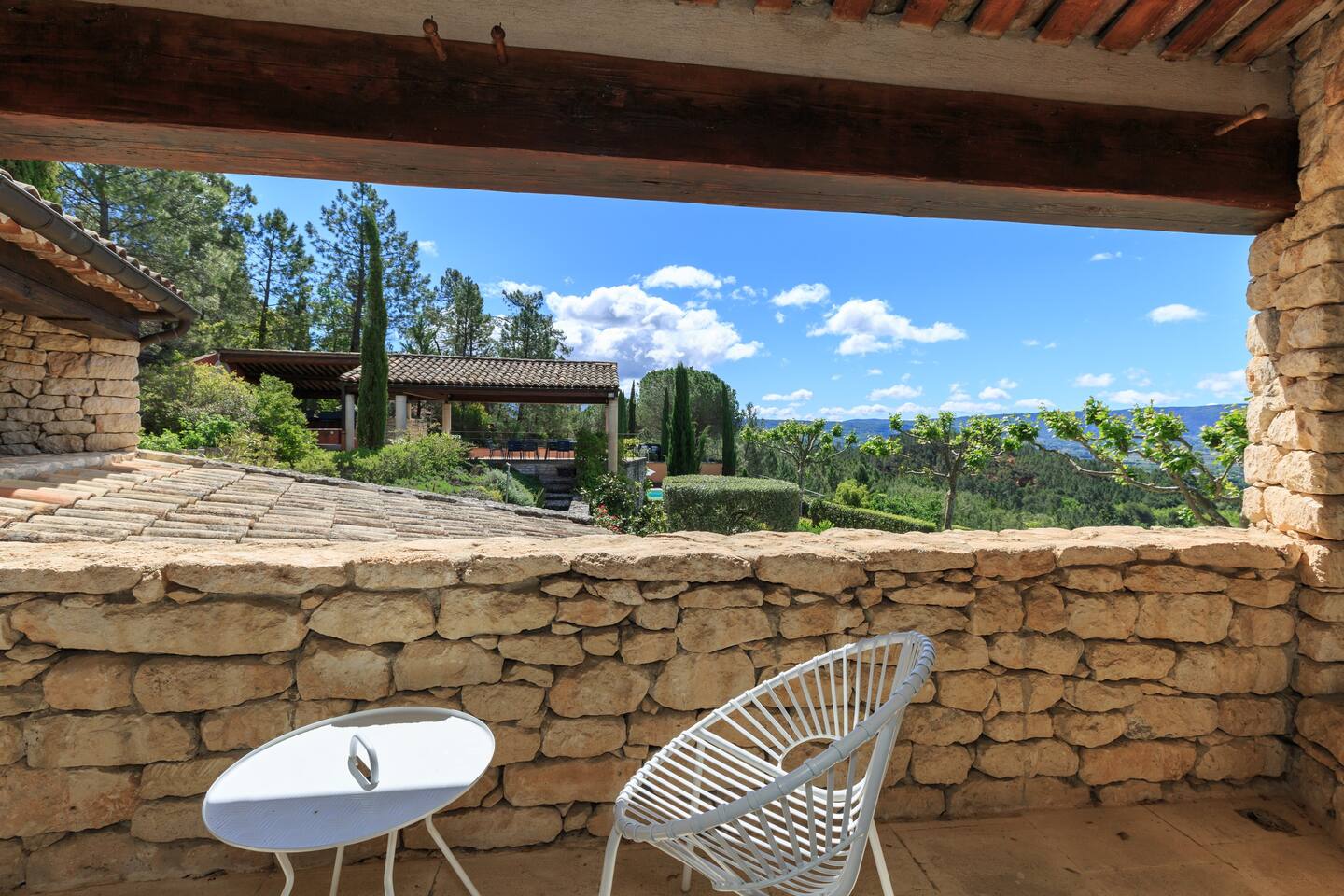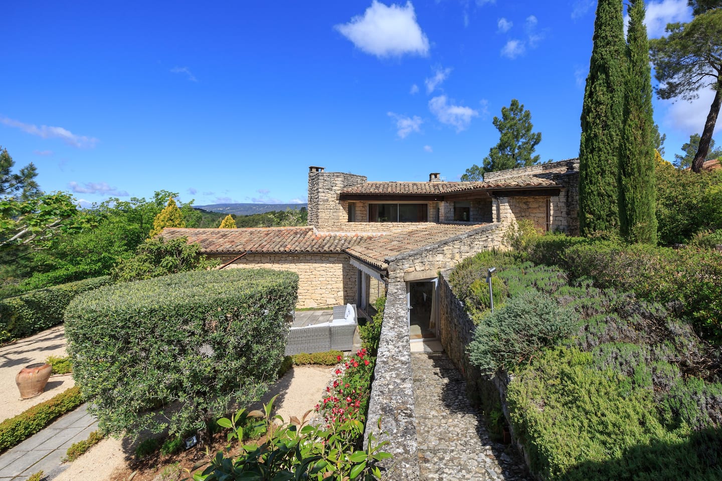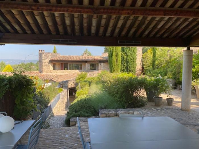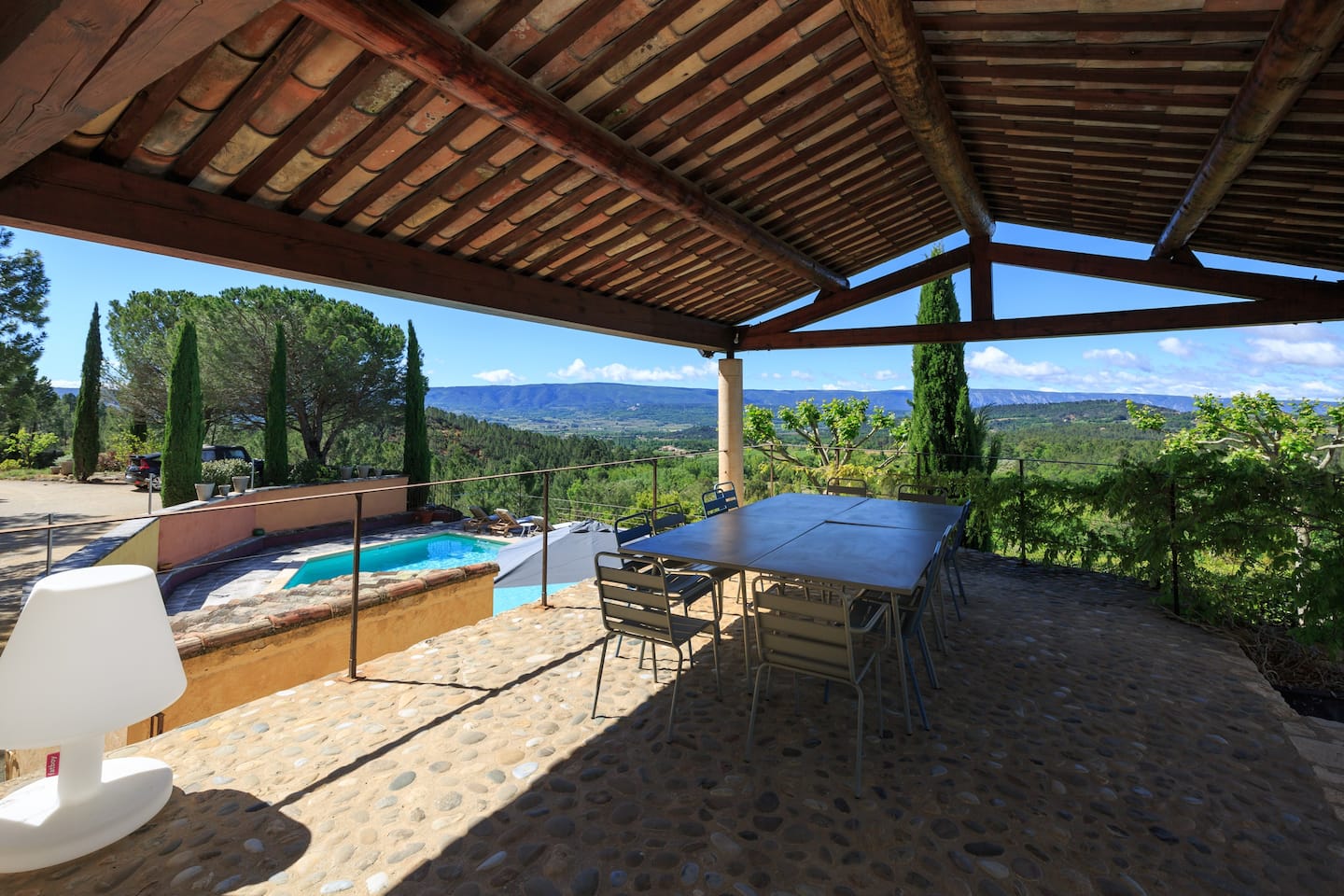 This beautiful Provencal house with swimming pool is undoubtedly the best place to immerse yourself in the heart of Provence. Thanks to its dominant position, it overlooks the valley and offers a breathtaking view of the Luberon. In the evening, Bonnieux stands out in the semi-darkness and its lit streets stand out from the house terrace. The Château du Marquis de Sade in Lacoste is also illuminated, and gives pretty golden nuances to the darkened landscape. This height allows you to enjoy great calm and deep tranquility. The exterior is designed so that everyone can easily isolate themselves and find their share of tranquility. There is an awning in the garden which makes it possible to comfortably enjoy meals or breakfasts outdoors even on the sunniest days. Built by an architect, the house is made of dry stone and ocher, allowing it to blend into the mountain and find its place perfectly. Very comfortable, it accommodates up to 8 people in its 4 bedrooms and 3 bathrooms. One of the so-called "quiet" rooms is completely independent and enjoys great privacy.