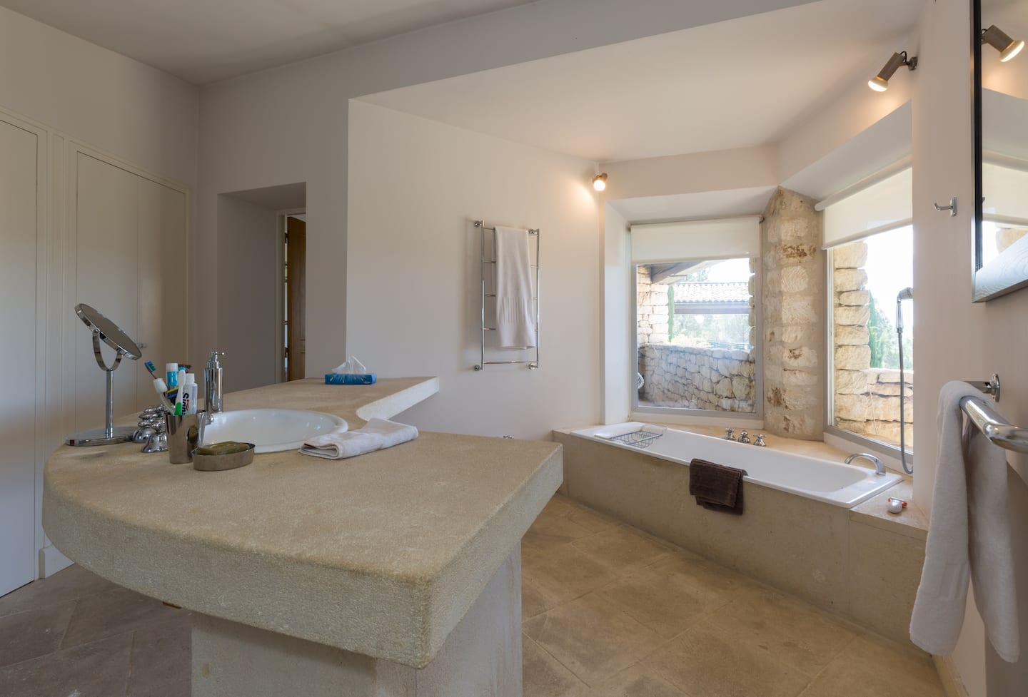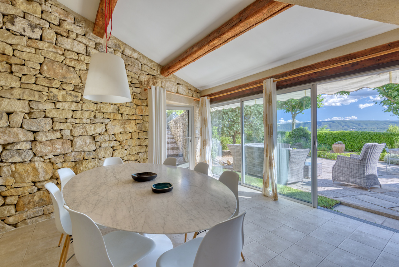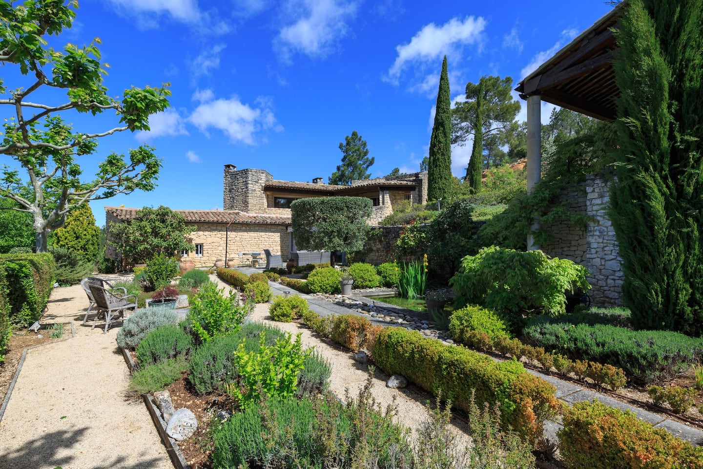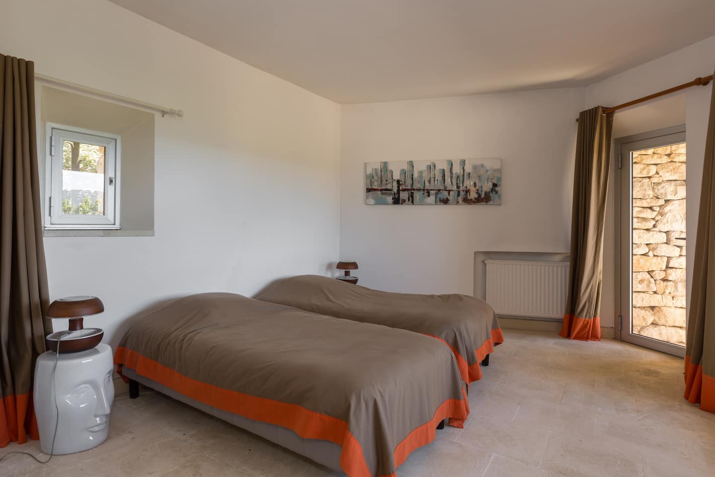 This beautiful Provencal house with swimming pool is undoubtedly the best place to immerse yourself in the heart of Provence. Thanks to its dominant position, it overlooks the valley and offers a breathtaking view of the Luberon. In the evening, Bonnieux stands out in the semi-darkness and its lit streets stand out from the house terrace. The Château du Marquis de Sade in Lacoste is also illuminated, and gives pretty golden nuances to the darkened landscape. This height allows you to enjoy great calm and deep tranquility. The exterior is designed so that everyone can easily isolate themselves and find their share of tranquility. There is an awning in the garden which makes it possible to comfortably enjoy meals or breakfasts outdoors even on the sunniest days. Built by an architect, the house is made of dry stone and ocher, allowing it to blend into the mountain and find its place perfectly. Very comfortable, it accommodates up to 8 people in its 4 bedrooms and 3 bathrooms. One of the so-called "quiet" rooms is completely independent and enjoys great privacy.